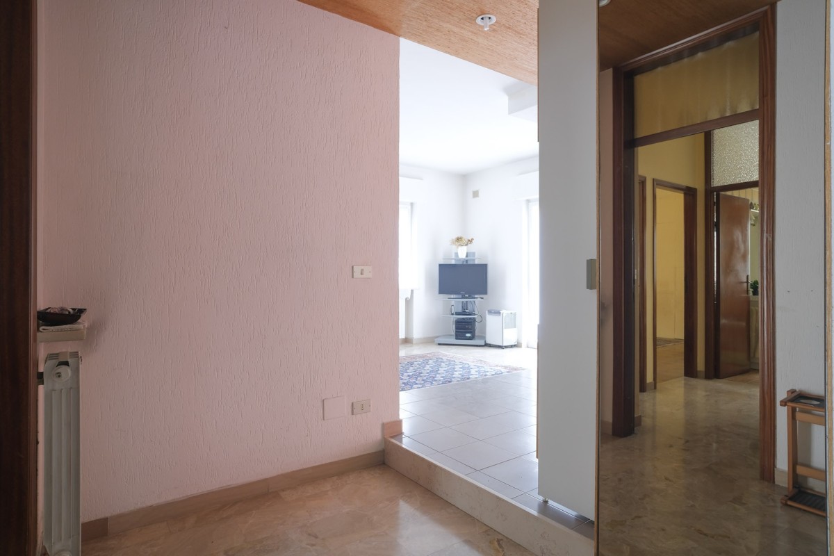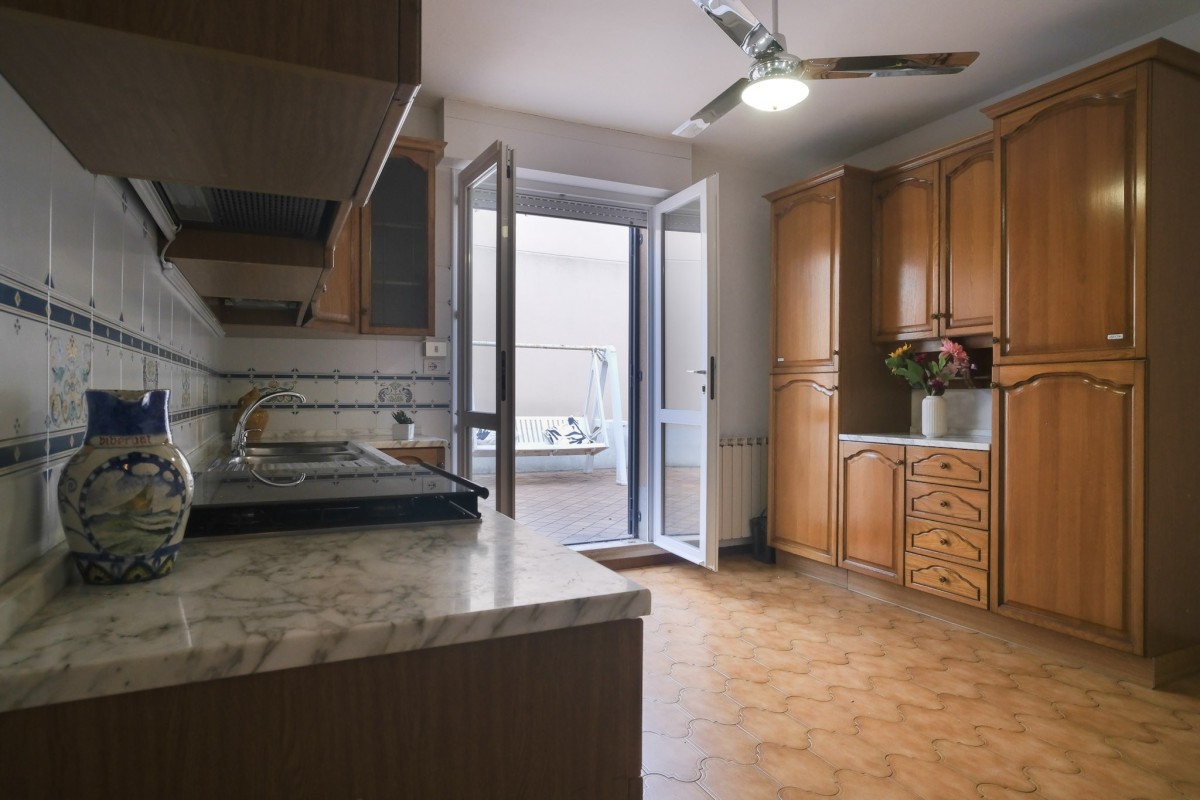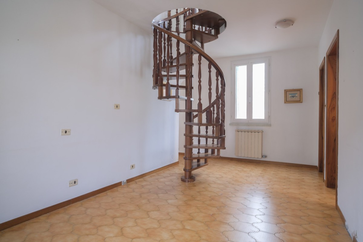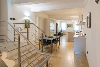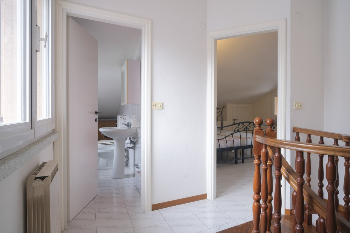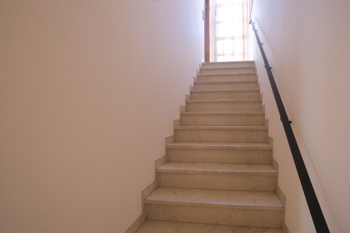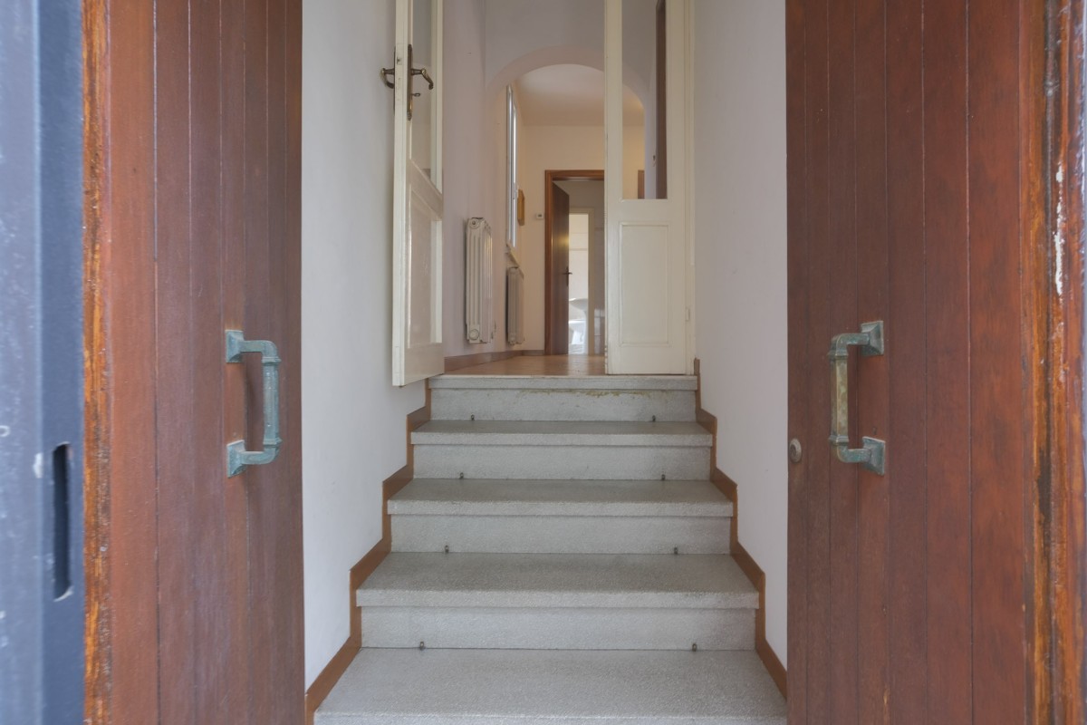 L'appartamento ha un ingresso indipendente al piano terra, e si sviluppa interamente al primo piano; è internamente composto da spazioso soggiorno con cucina abitabile separata, disimpegno, una camera matrimoniale, un'ampia camera singola, un ripostiglio finestrato utilizzabile all'occorrenza come studio o terza camera, e due bagni finestrati.