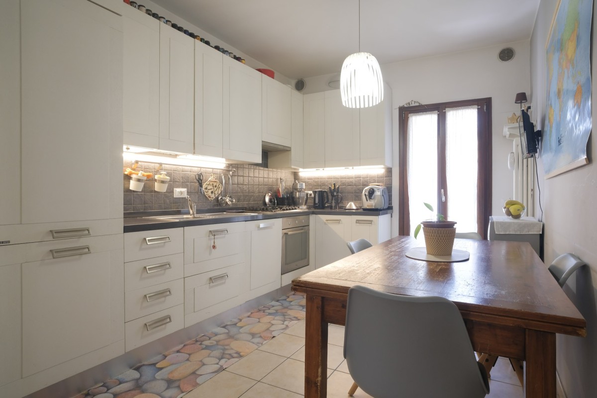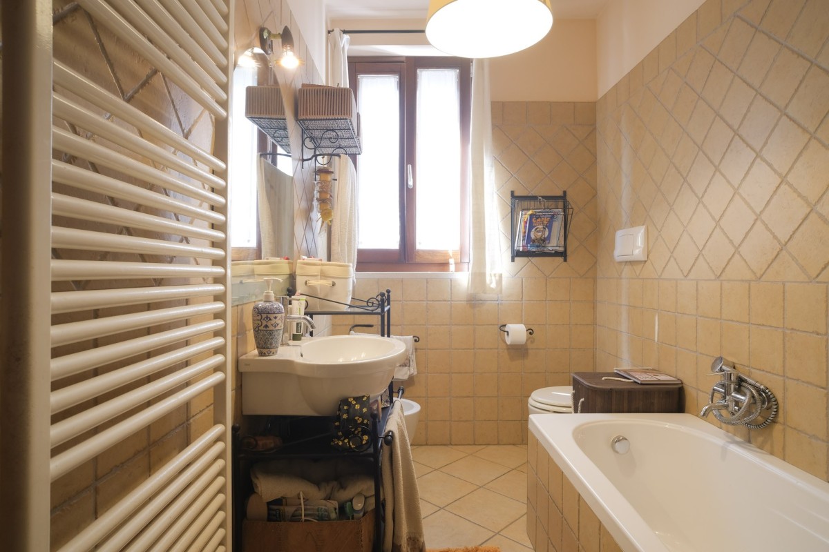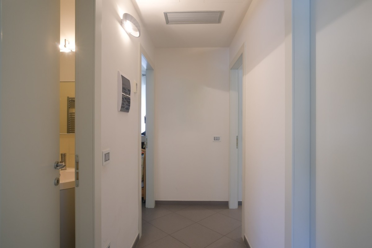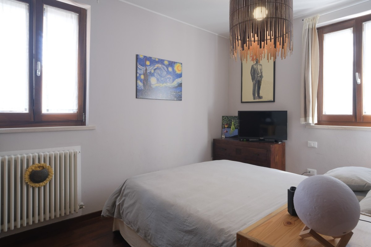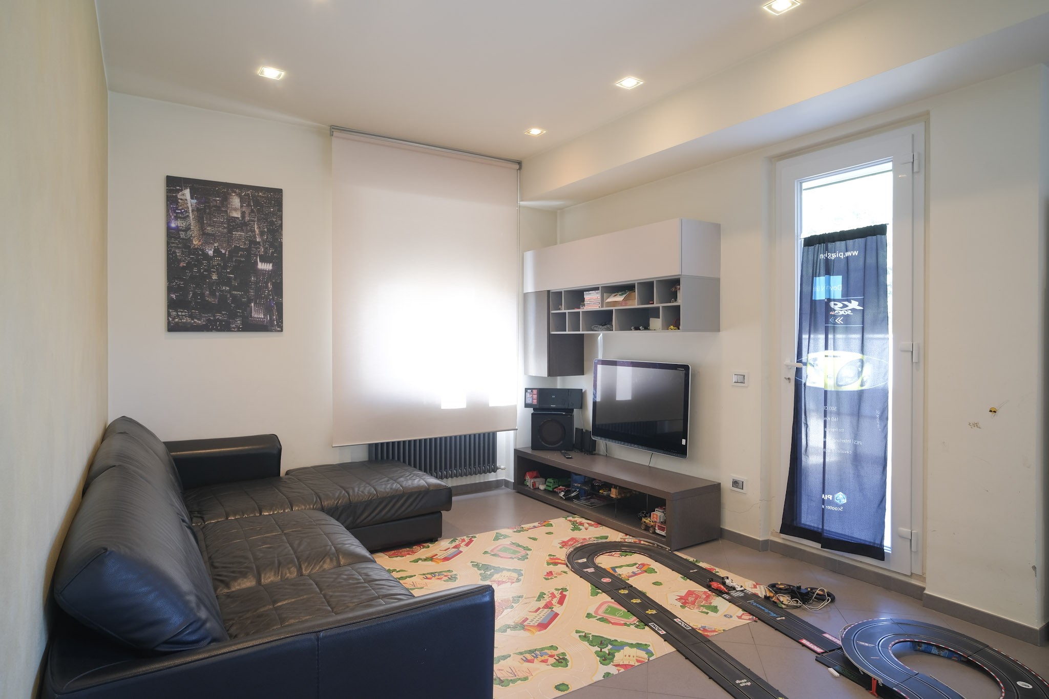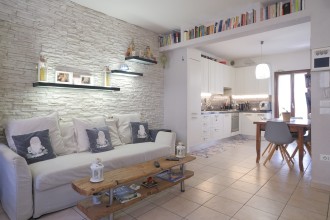 L'appartamento ha un ingresso indipendente al piano terra, e si sviluppa interamente al primo piano; è internamente composto da spazioso soggiorno con cucina abitabile separata, disimpegno, una camera matrimoniale, un'ampia camera singola, un ripostiglio finestrato utilizzabile all'occorrenza come studio o terza camera, e due bagni finestrati.