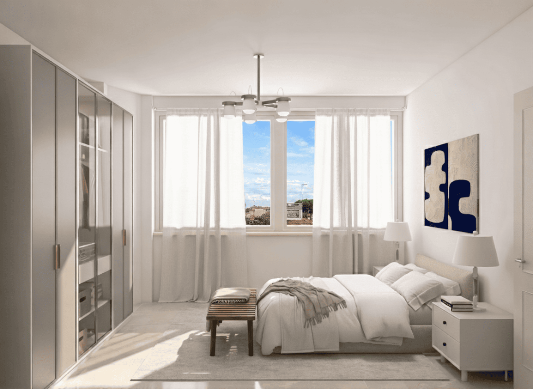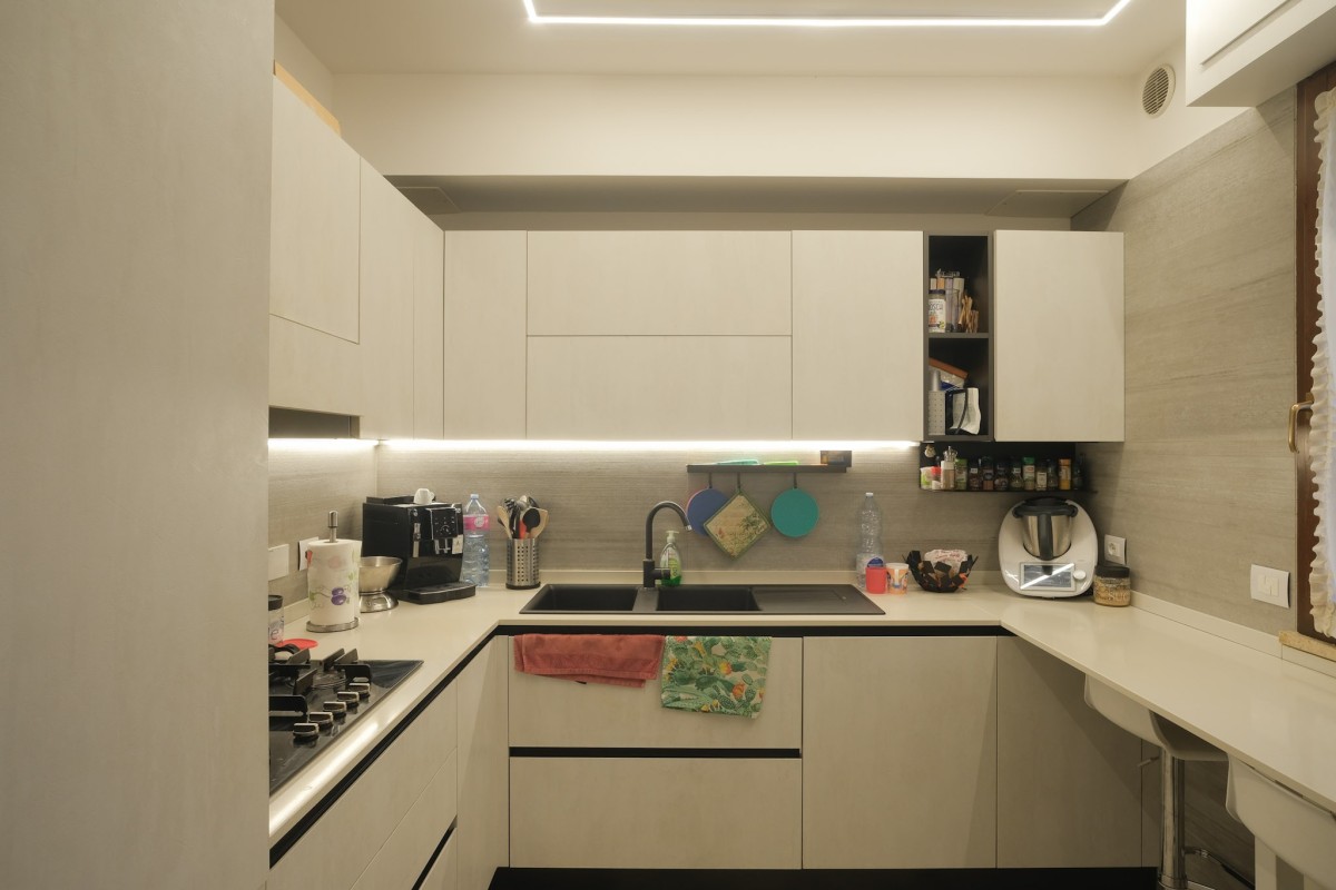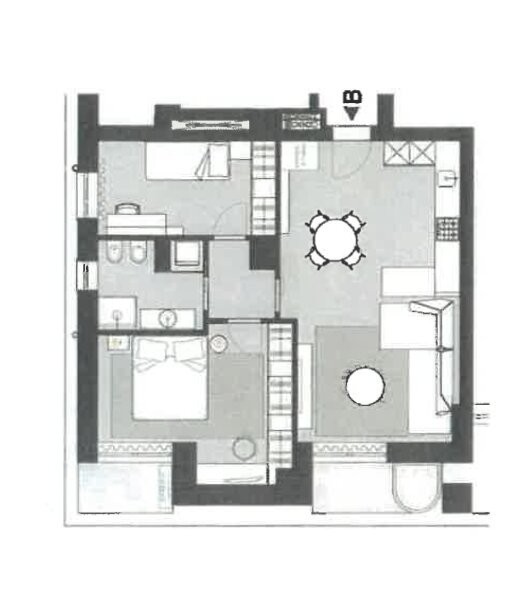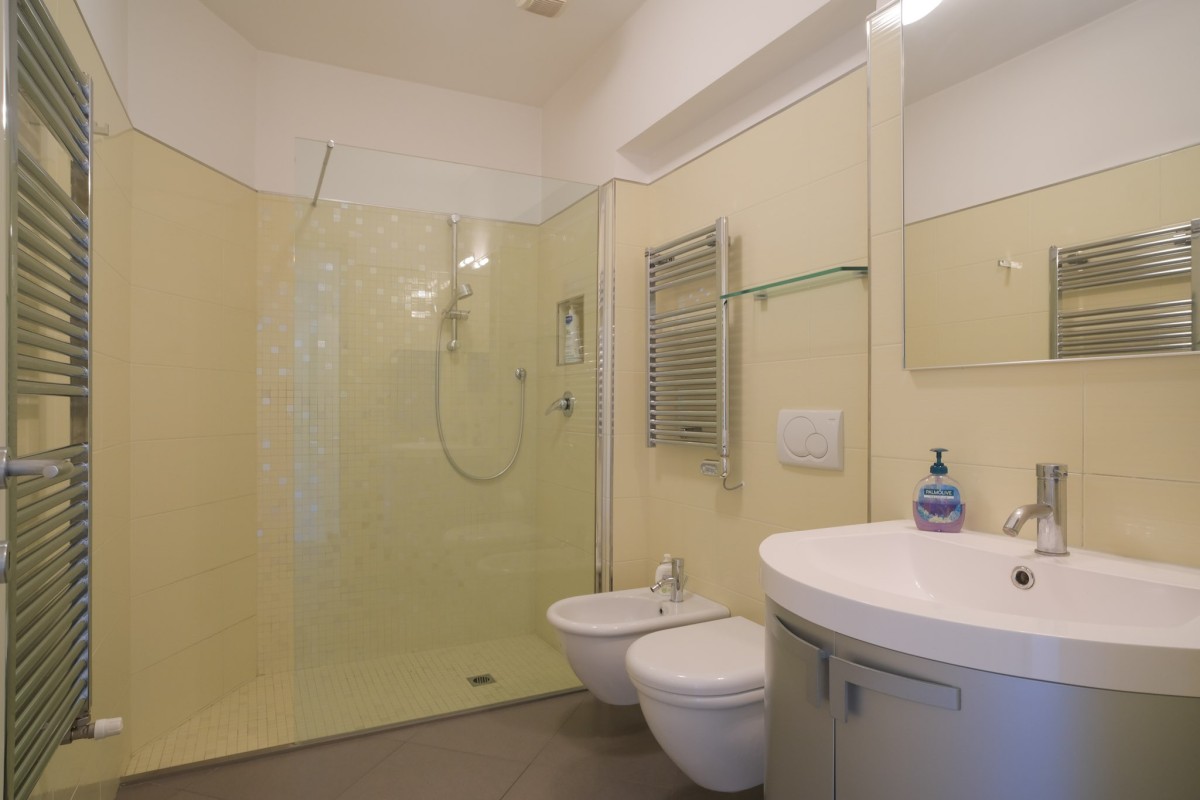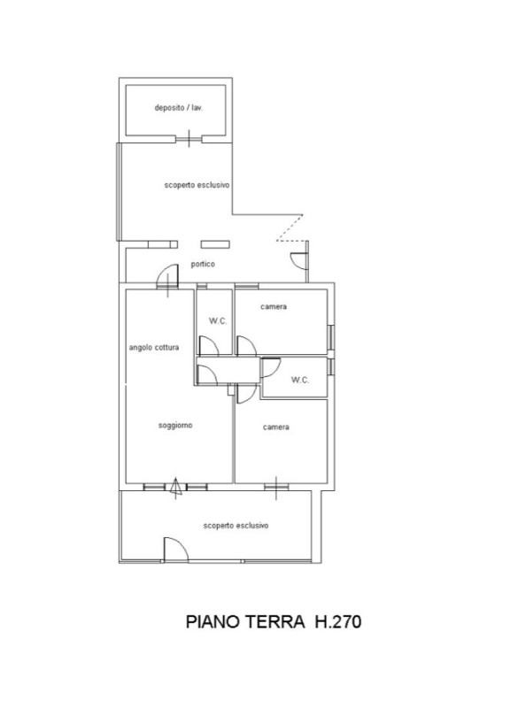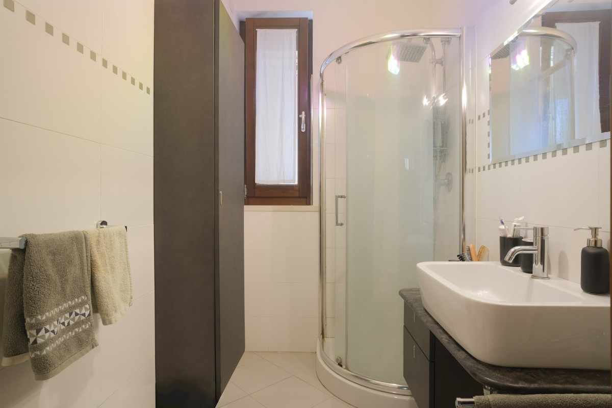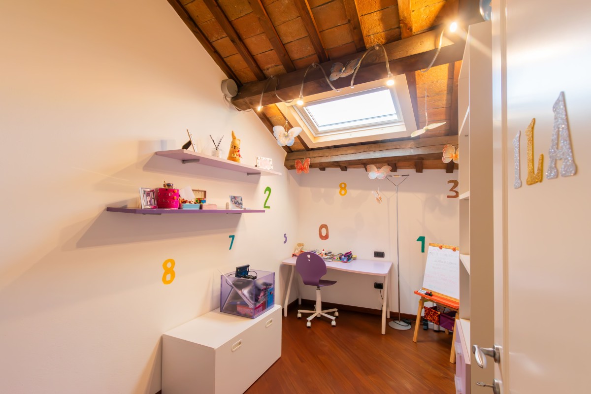 L'appartamento ha un ingresso indipendente al piano terra, e si sviluppa interamente al primo piano; è internamente composto da spazioso soggiorno con cucina abitabile separata, disimpegno, una camera matrimoniale, un'ampia camera singola, un ripostiglio finestrato utilizzabile all'occorrenza come studio o terza camera, e due bagni finestrati.