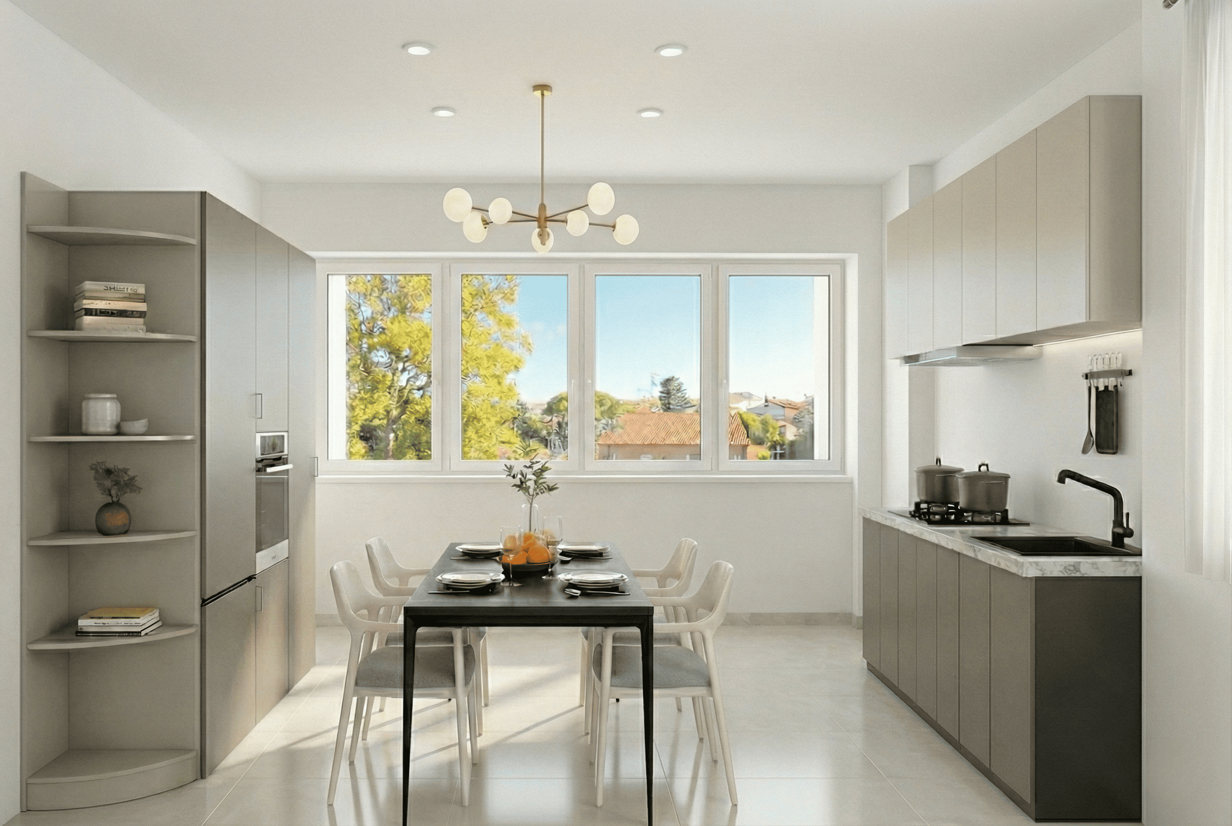 A servizio della zona giorno, un ampio terrazzo, ideale per pranzi e cene all'aperto.