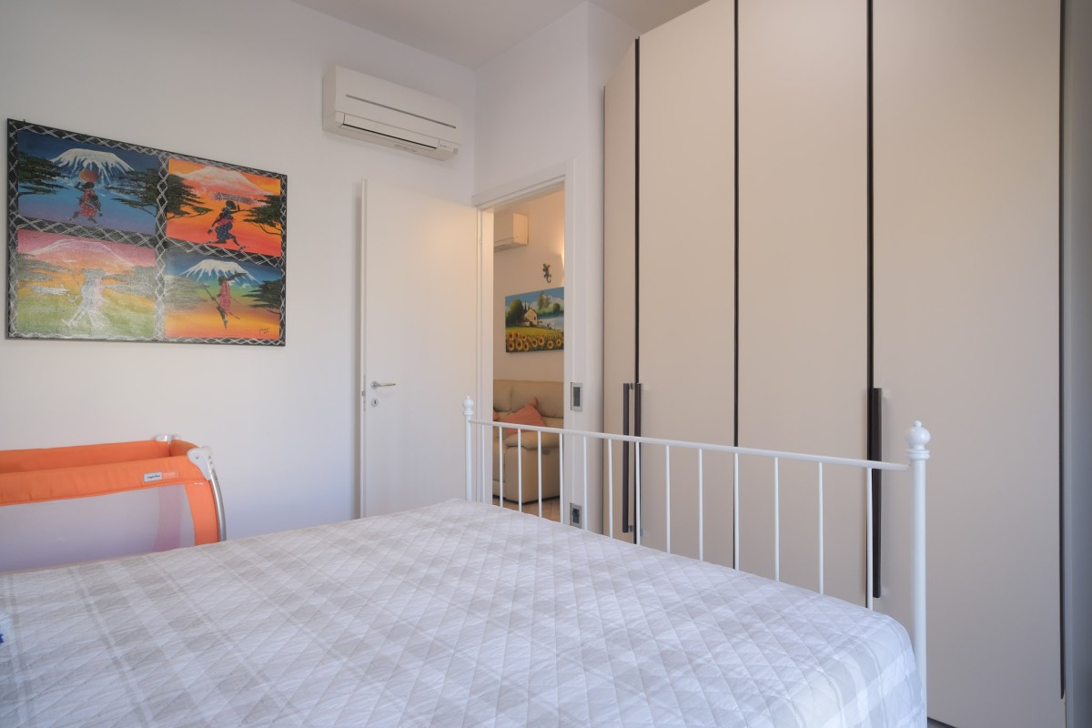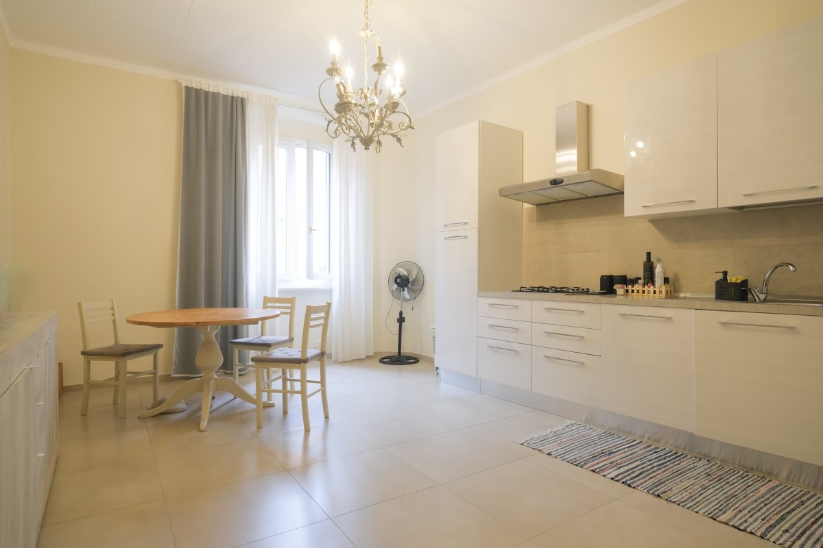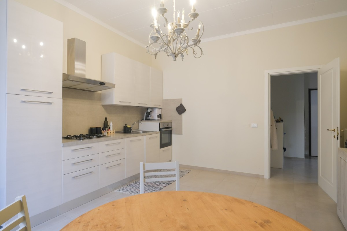 L’appartamento è caratterizzato da una generosa luminosità naturale che valorizza ogni ambiente, ed è internamente composto da un ingresso con zona giorno divisa in accogliente sala servita da balcone, e cucina abitabile separata.