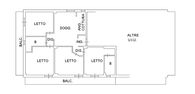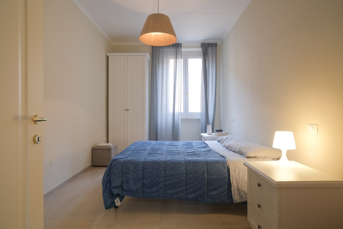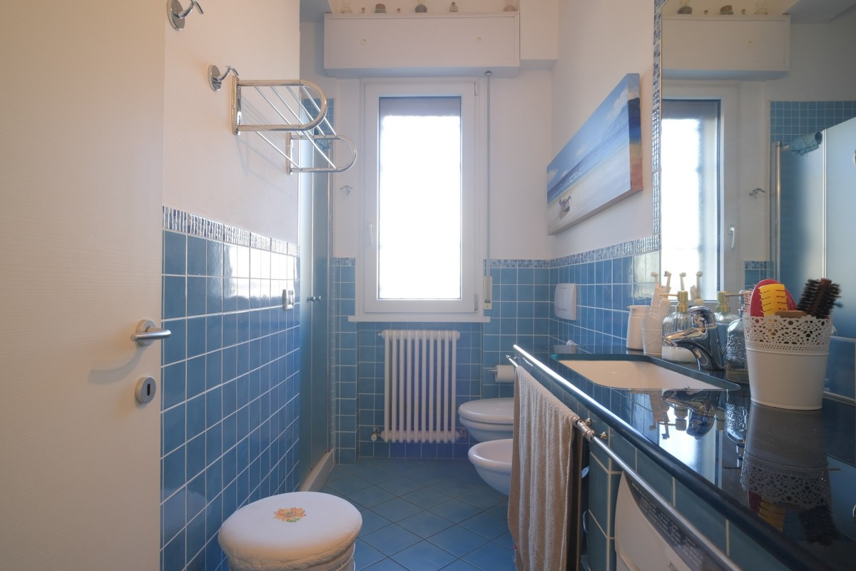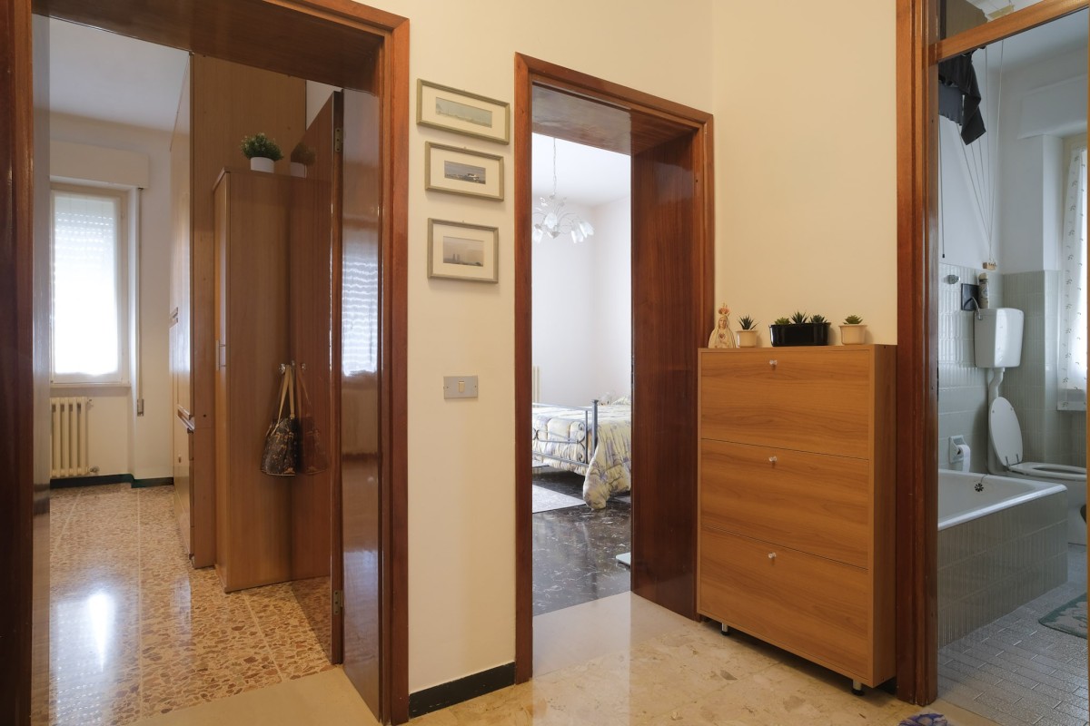 Proseguendo troviamo il disimpegno con un totale di 4 camere matrimoniali che si affacciano tutte sui due lunghi balconi principali, oltre ai due bagni finestrati di cui uno con spazio dedicato per la lavatrice.