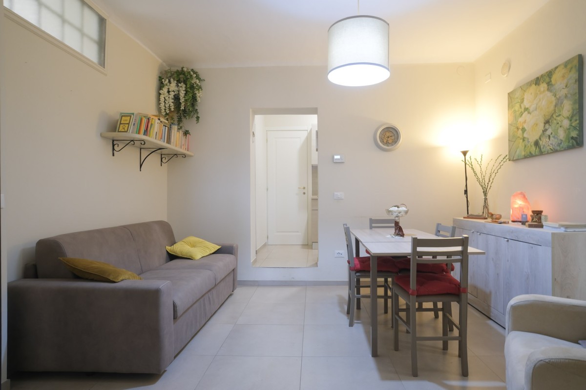 L'appartamento internamente è composto da ingresso e luminoso soggiorno-pranzo con angolo cottura.