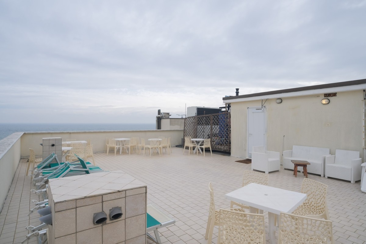 Un altro punto di forza di questa proprietà è il terrazzo abitabile all'ultimo piano di circa 160 Mq con meravigliosa vista mare, attualmente adibita a zona solarium attrezzata con lettini dove è possibile godersi l'aria di mare in ogni momento della giornata.