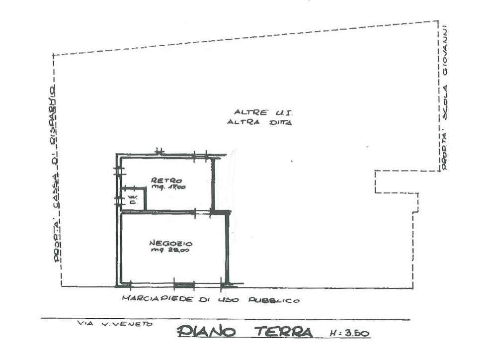 - n.4 negozi al piano terra, rispettivamente di 125 Mq, 55 Mq, 40 Mq e 37 Mq.