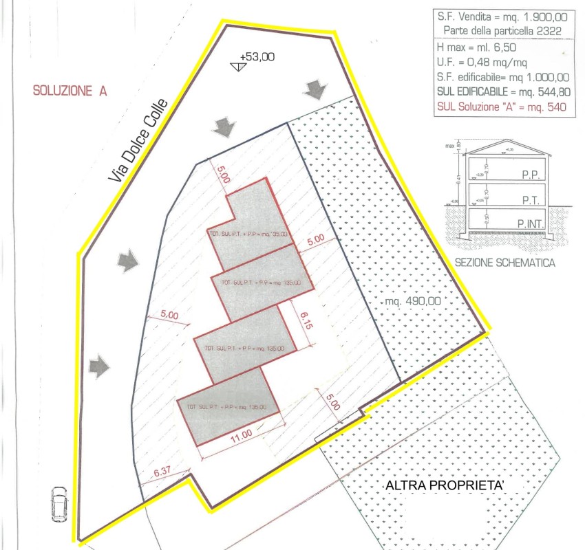Il lotto confina su tre lati con la strada comunale Via Dolce Colle, quindi con la possibilità di un facile accesso.