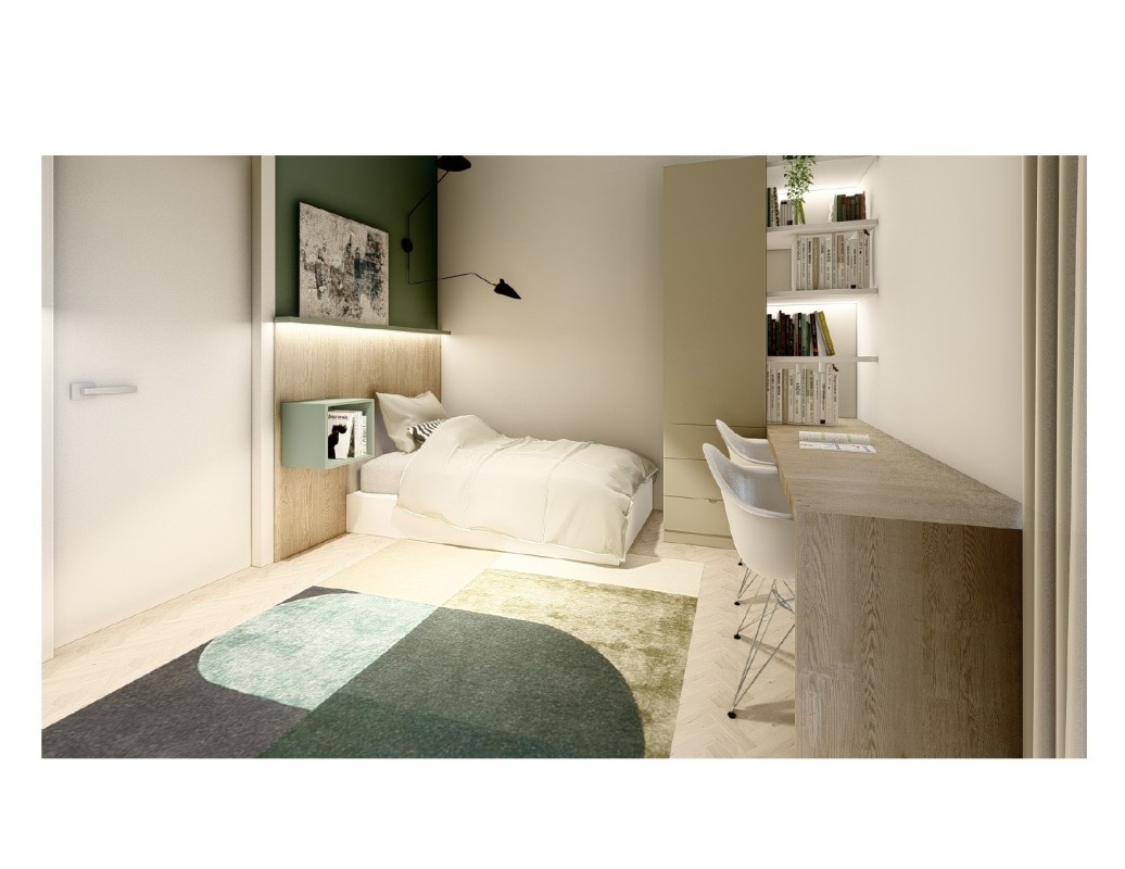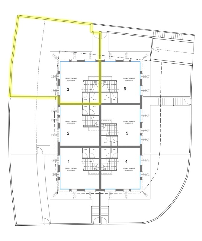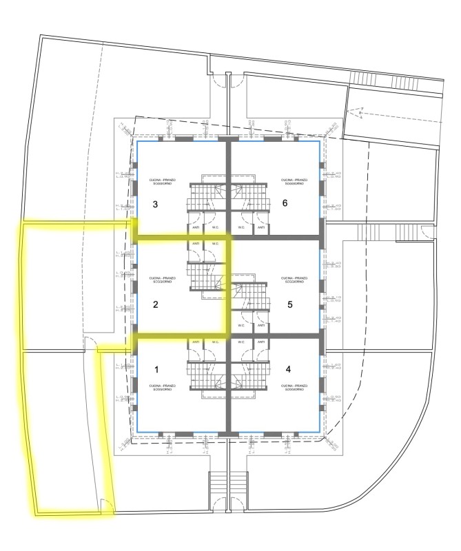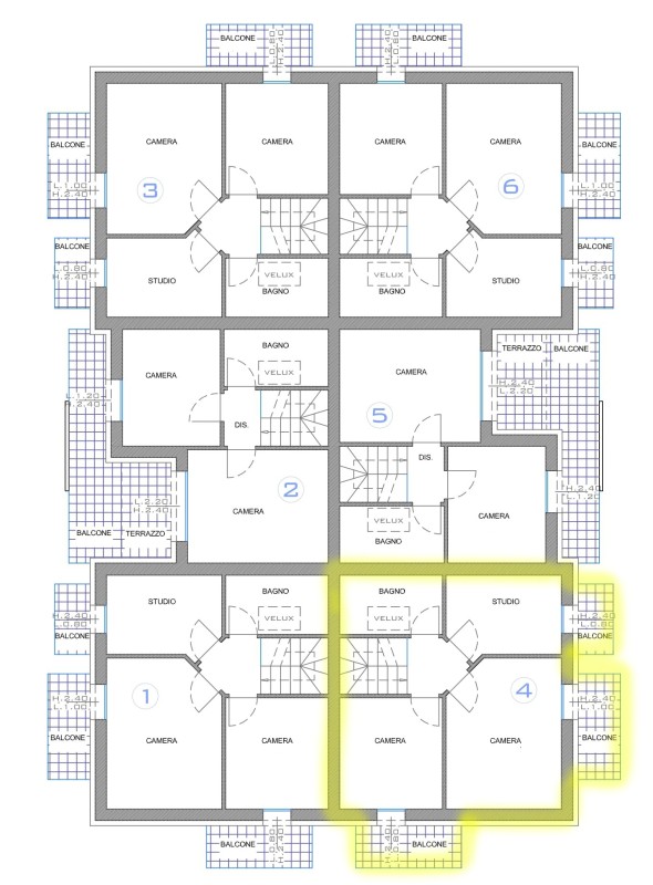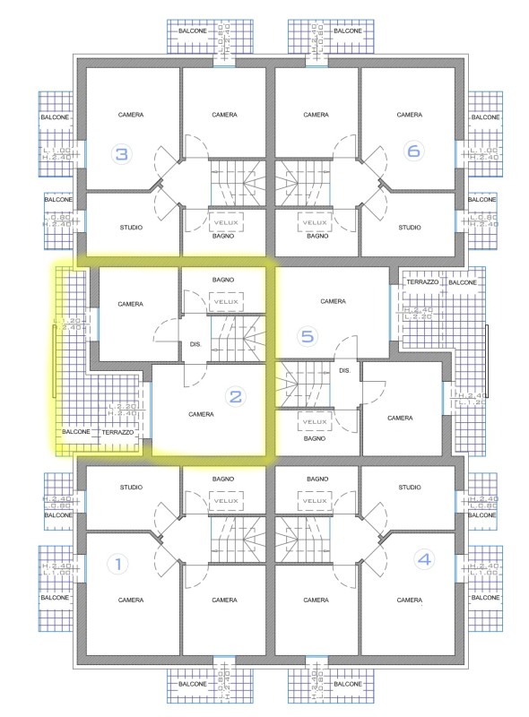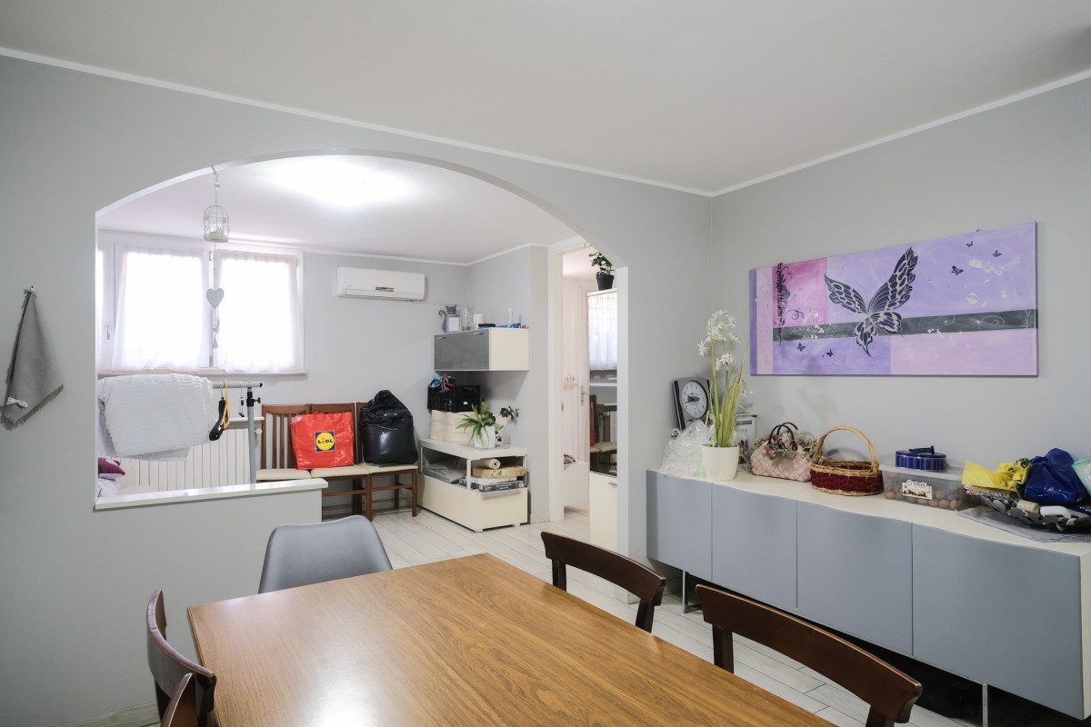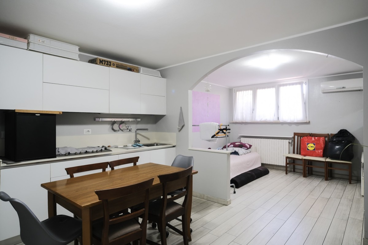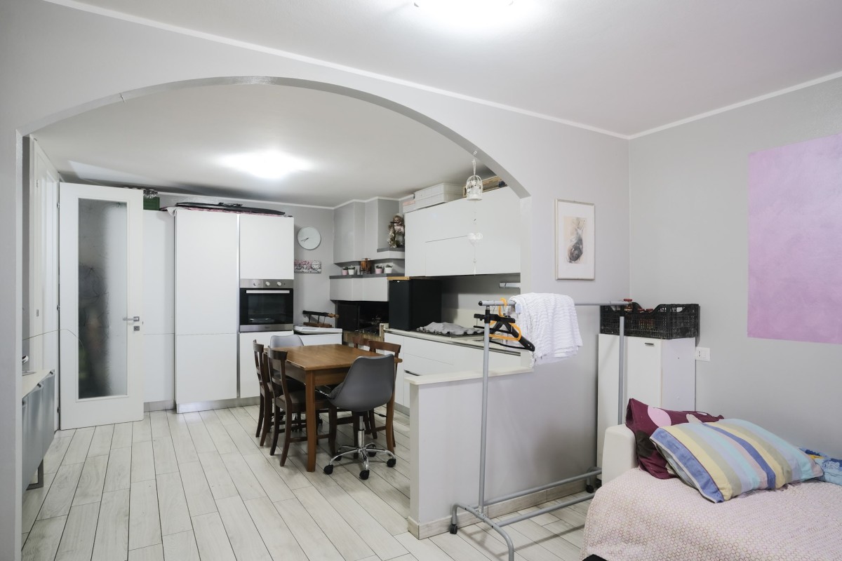 La seconda unità immobiliare è invece disposta su tre livelli, con la zona pranzo ed il bagno finestrato al piano terra, al piano superiore si sviluppa il soggiorno attualmente utilizzato come camera, ed al secondo piano troviamo un'ulteriore camera da letto.