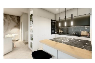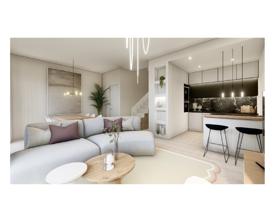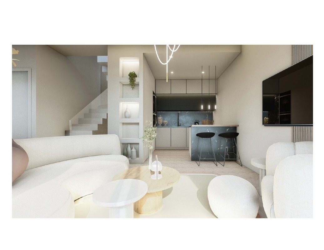 La prima unità immobiliare è disposta su due livelli, e nello specifico al piano terra si sviluppa la zona giorno con ampia sala e cucina abitabile separata, al piano superiore troviamo le due camere da letto.
