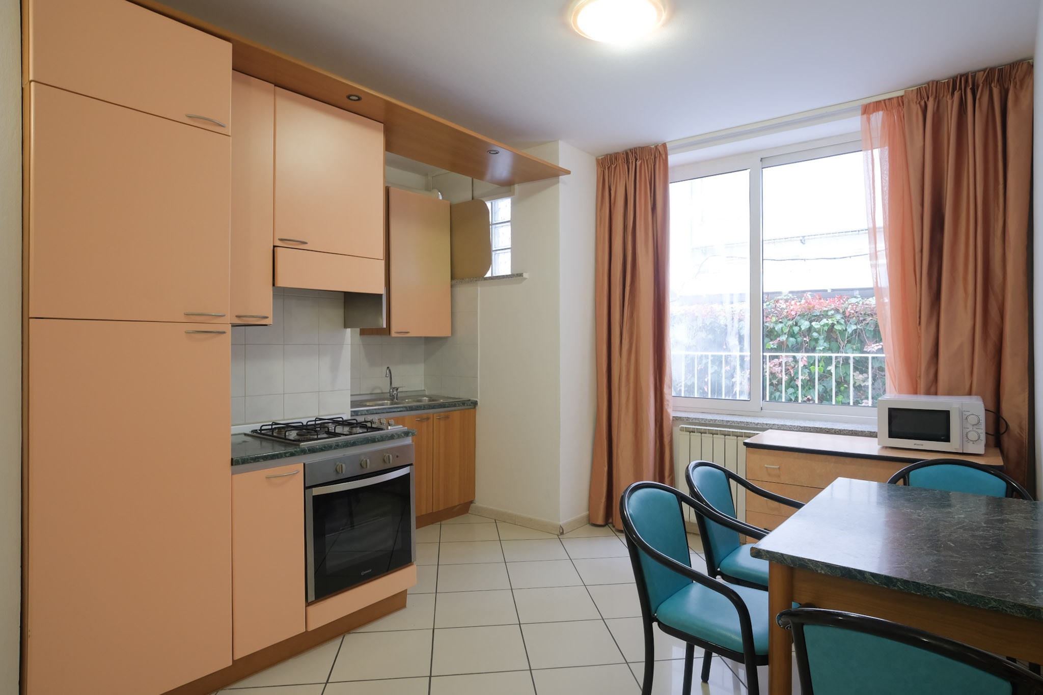 L’abitazione internamente è composta da luminoso soggiorno-pranzo con angolo cottura, bagno finestrato con box doccia, e due camere da letto servite da balcone.