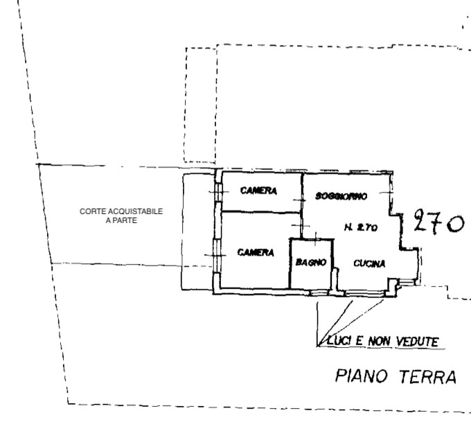 Si offre la possibilità di acquistare a parte una porzione di corte esterna, accessibile direttamente dall’appartamento, e posto auto o garage a seconda delle esigenze.