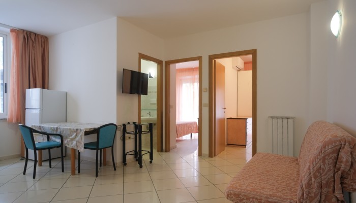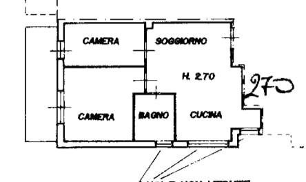 L’abitazione internamente è composta da luminoso soggiorno-pranzo con angolo cottura, bagno finestrato con box doccia, e due camere da letto servite da balcone.