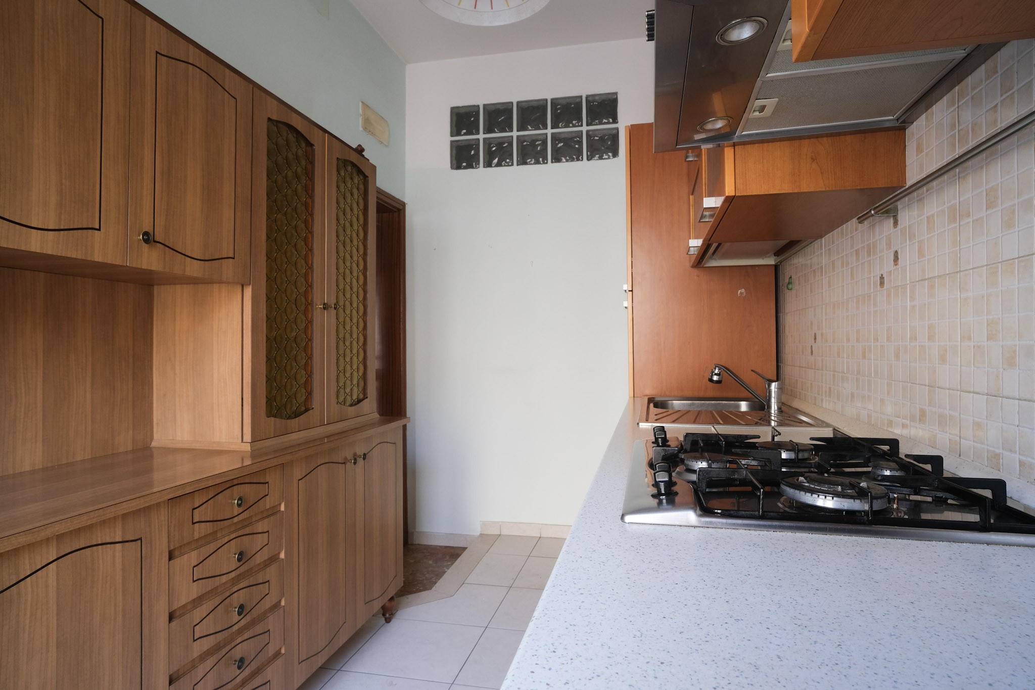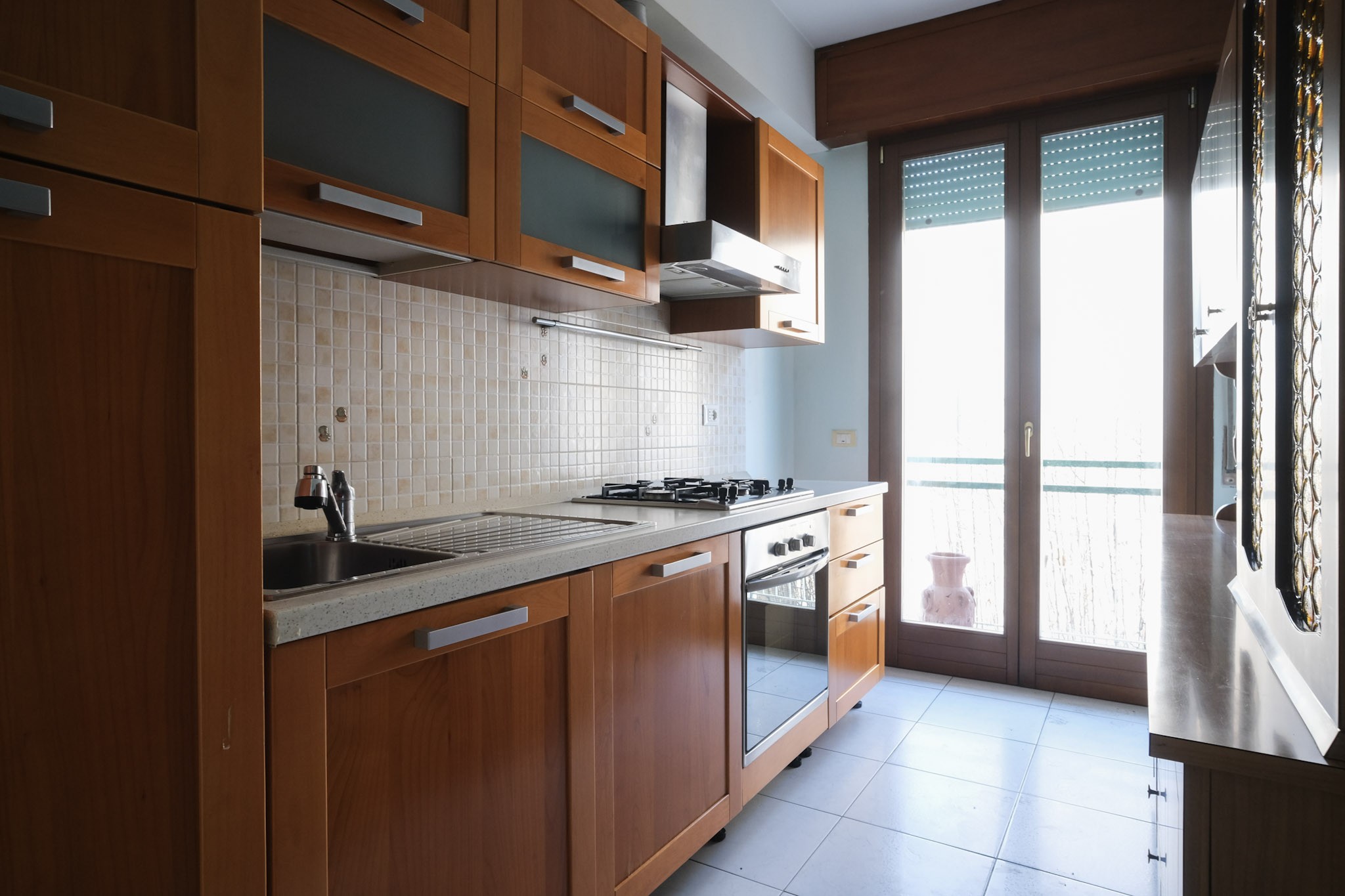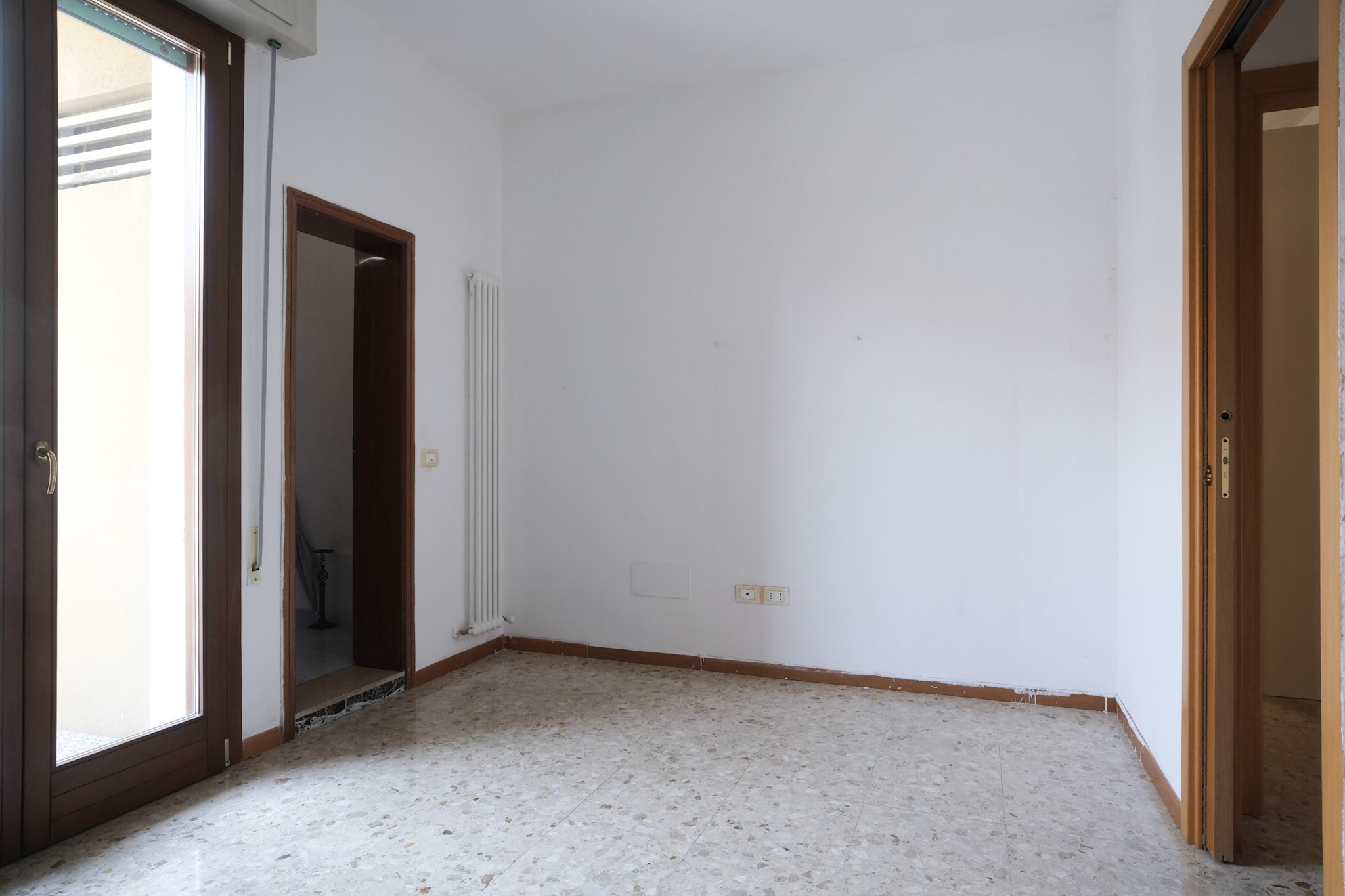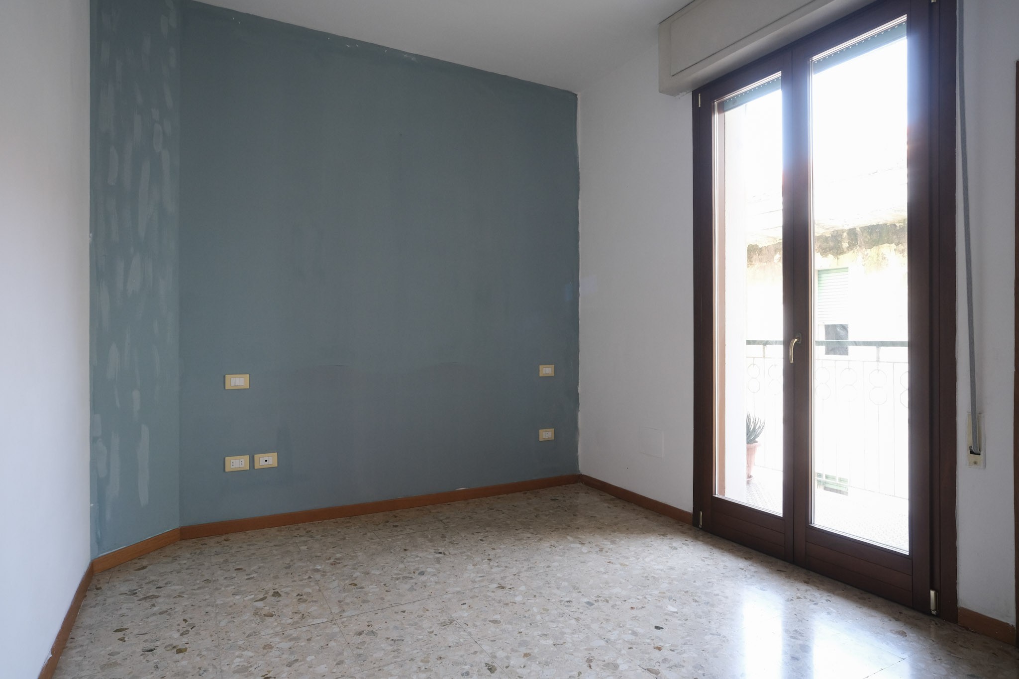 L'abitazione internamente è composta da ingresso che conduce al soggiorno dotato di balcone, e successivamente alla zona pranzo, servita da cucina separata, ripostiglio con finestra e ulteriore balcone.