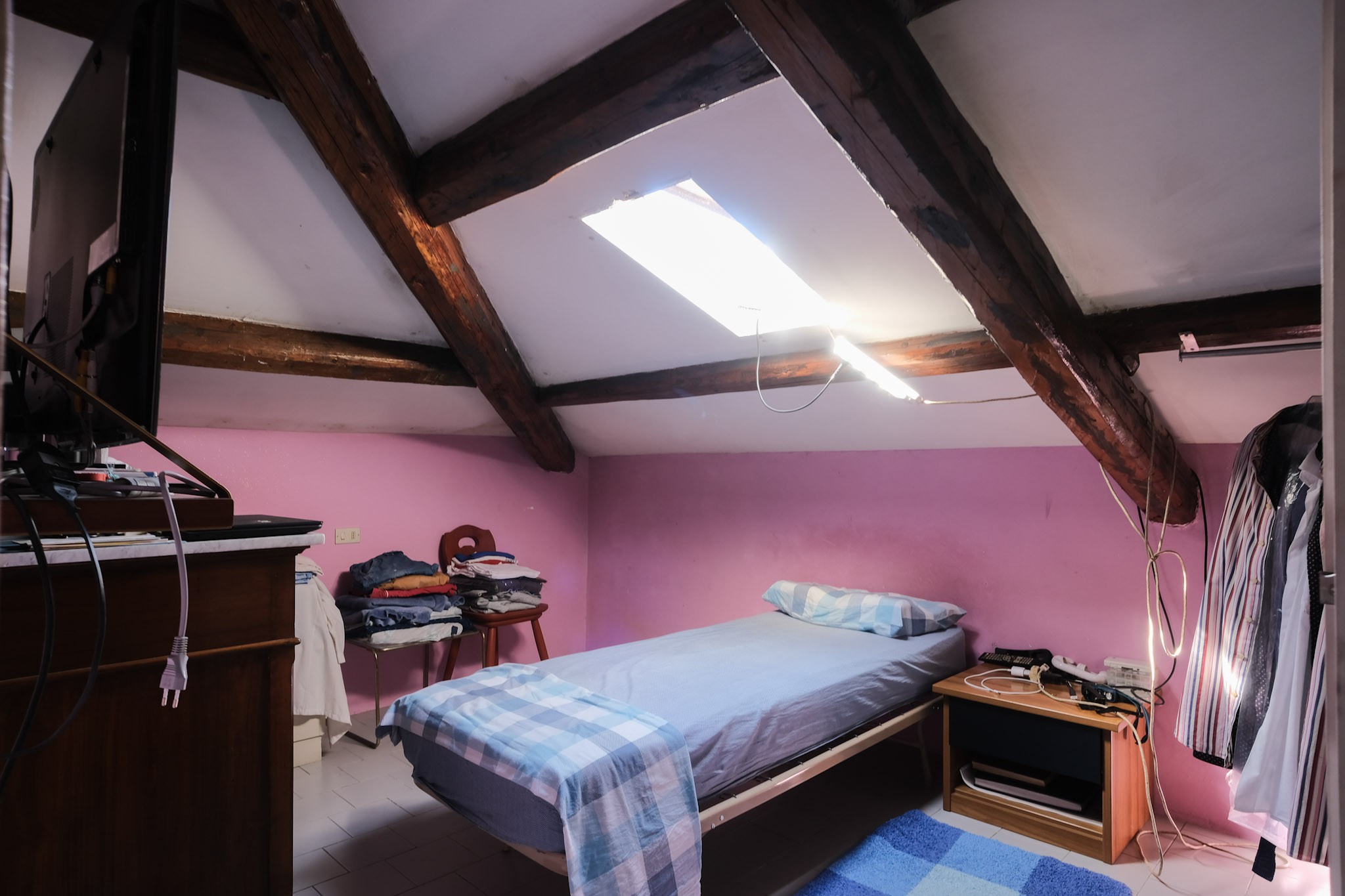 Salendo al piano superiore mansardato, troviamo altro spazio a disposizione dove poter realizzare ciò che si desidera: uno studio, una camera per gli ospiti o un angolo creativo.