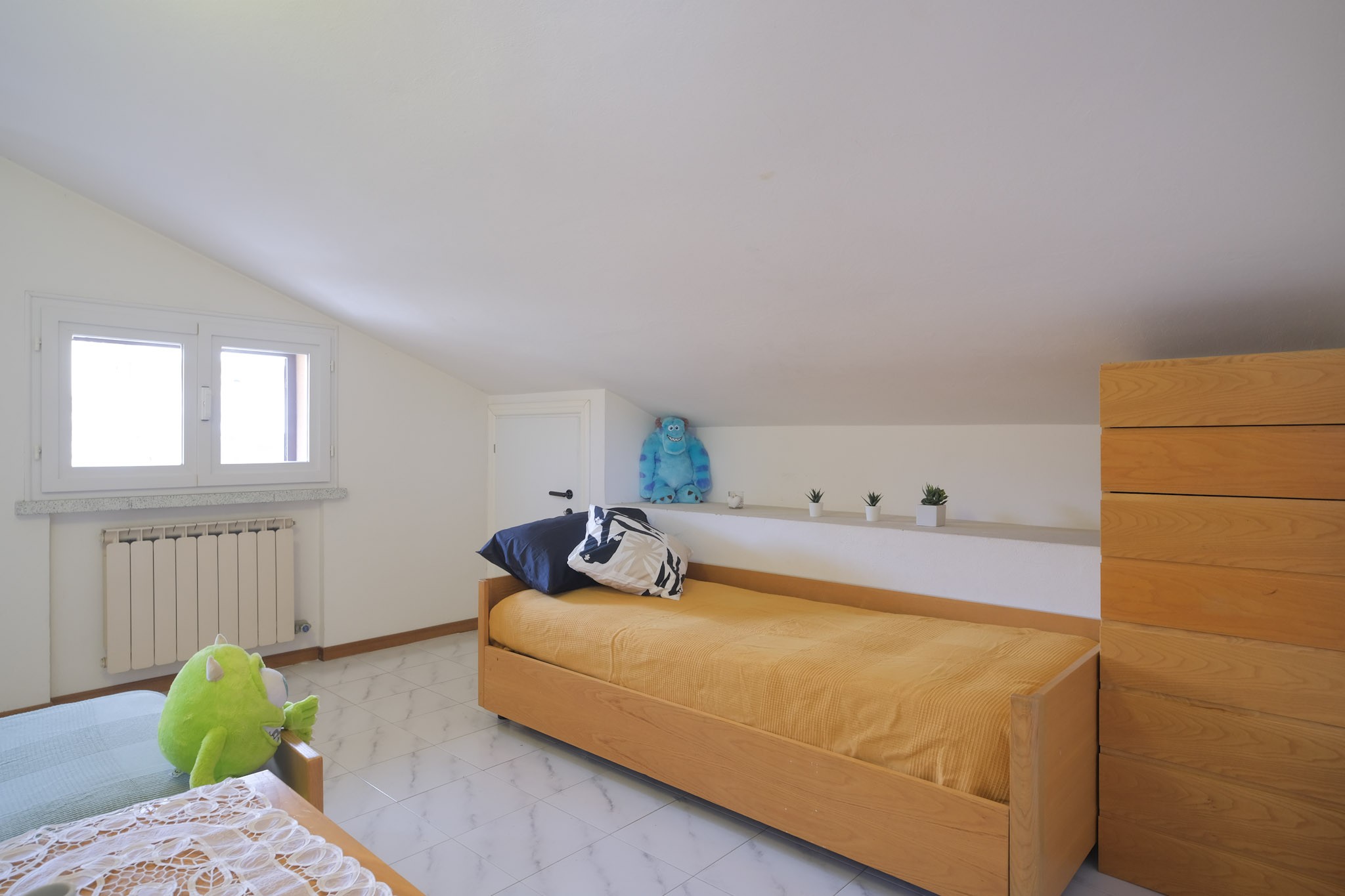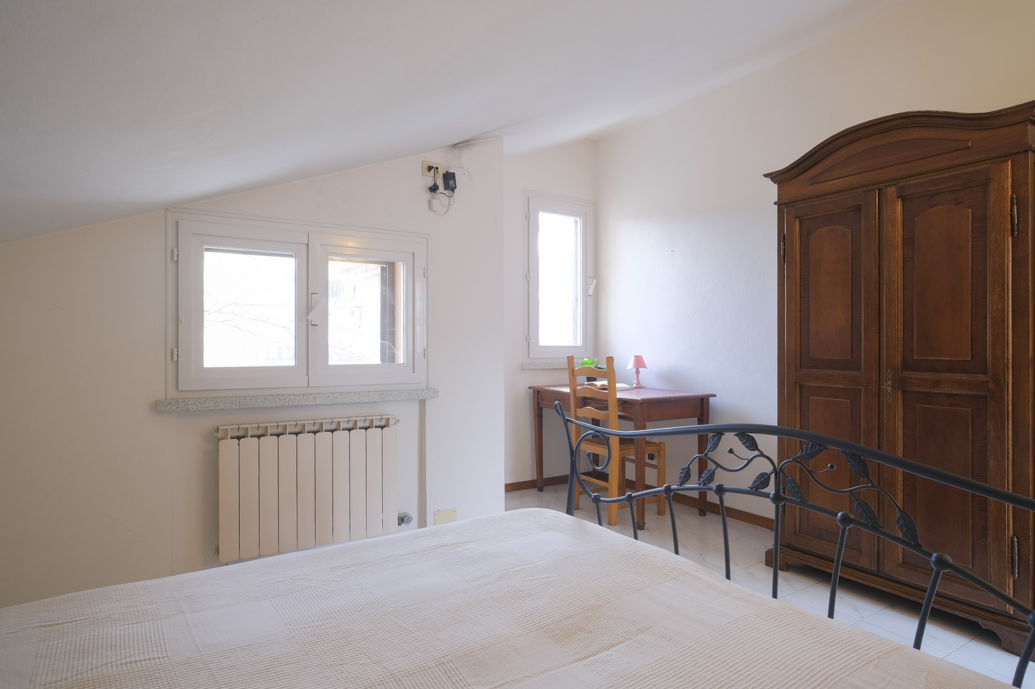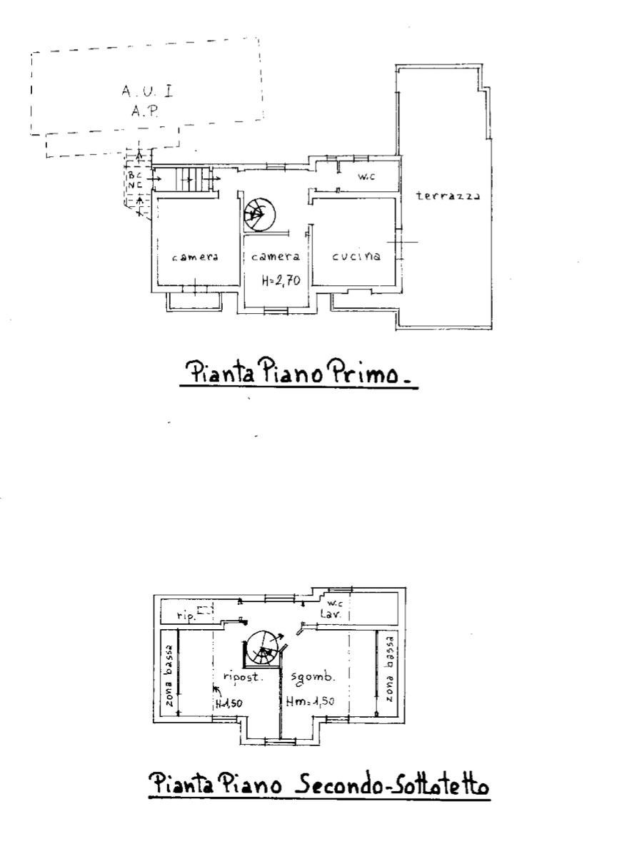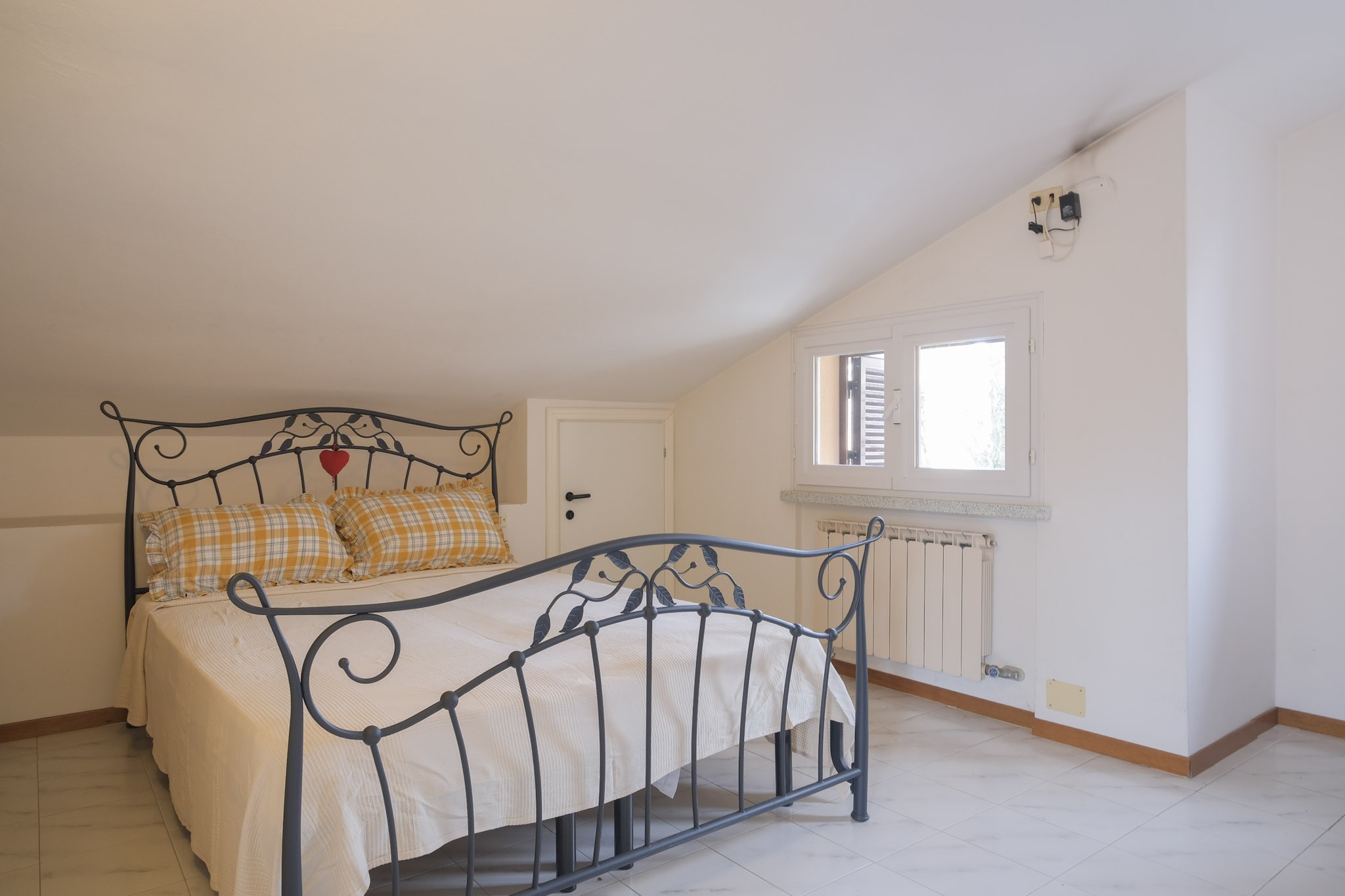 L'appartamento, sito al primo piano e disposto internamente su due livelli, è composto al piano principale da ingresso, cucina abitabile dotata di meraviglioso terrazzo di circa 50 mq, una camera matrimoniale, un bagno finestrato, ed un’ulteriore stanza adibita a soggiorno, con scala a chiocciola che porta al piano superiore; salendo al piano sottotetto troviamo un’ulteriore bagno, un piccolo ripostiglio e due ampi locali attualmente utilizzati come camere da letto, offrendo ottime possibilità di utilizzo degli spazi.