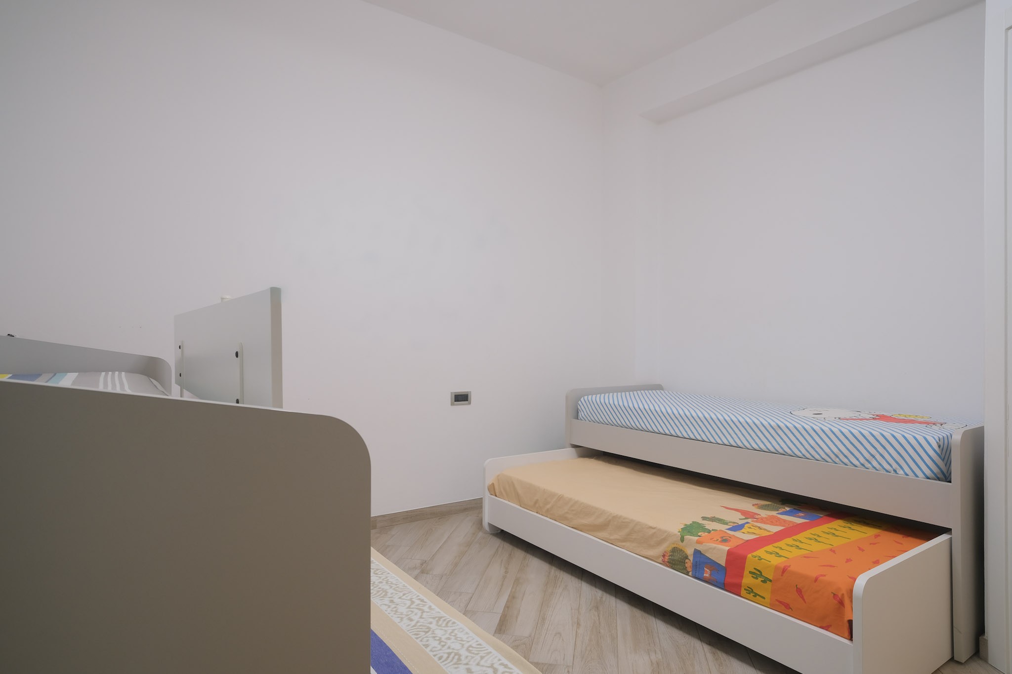 Proseguendo troviamo il disimpegno con un totale di 4 camere matrimoniali che si affacciano tutte sui due lunghi balconi principali, oltre ai due bagni finestrati di cui uno con spazio dedicato per la lavatrice.