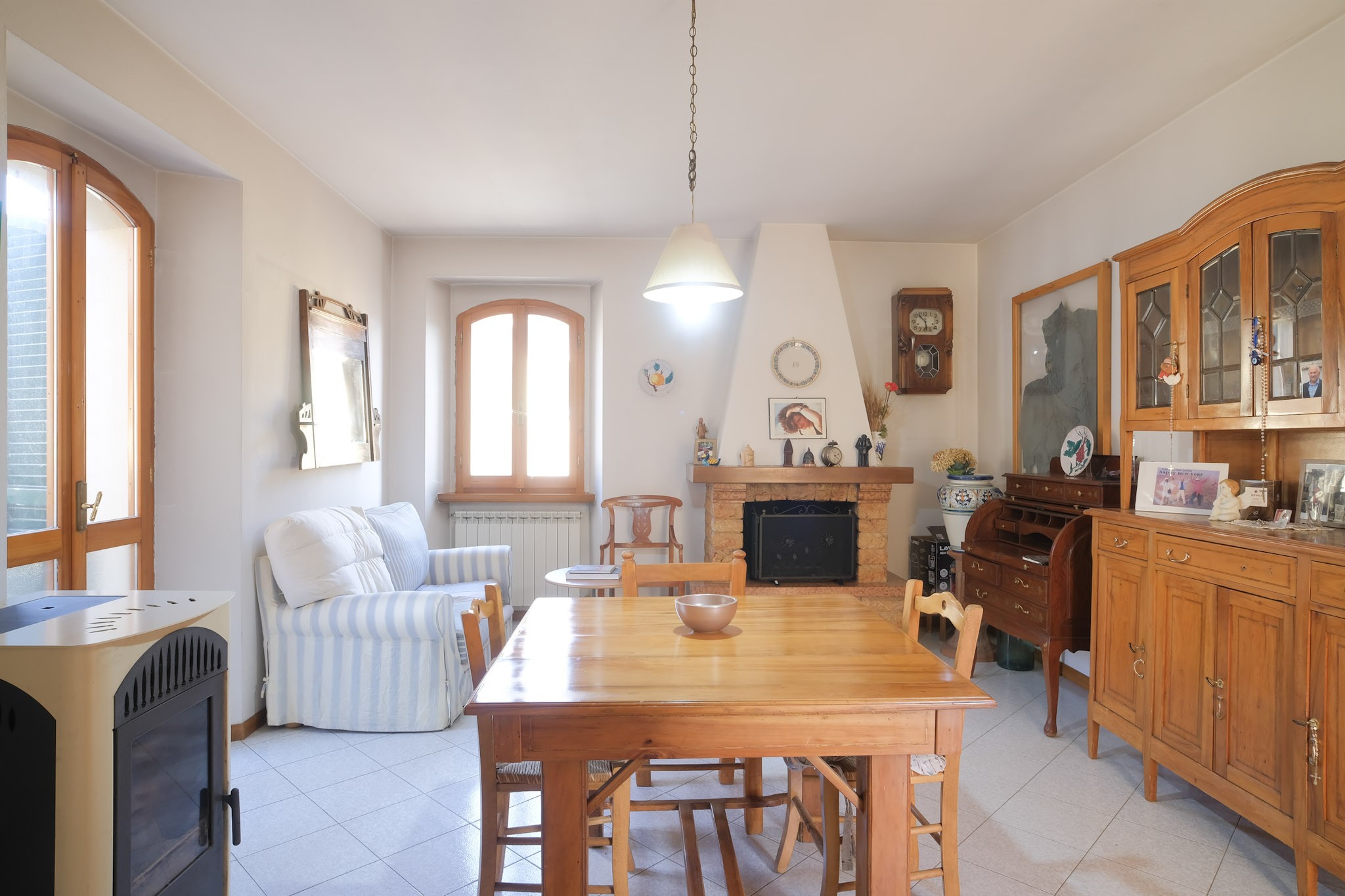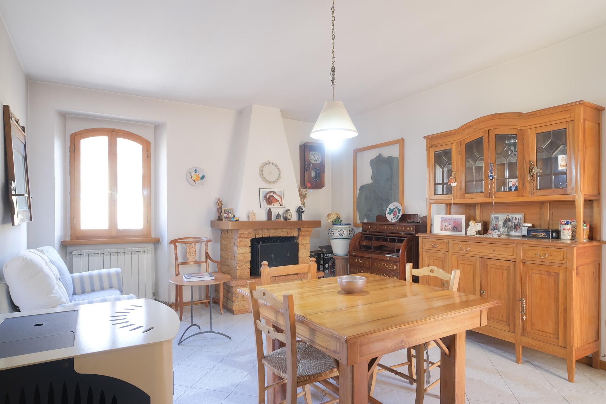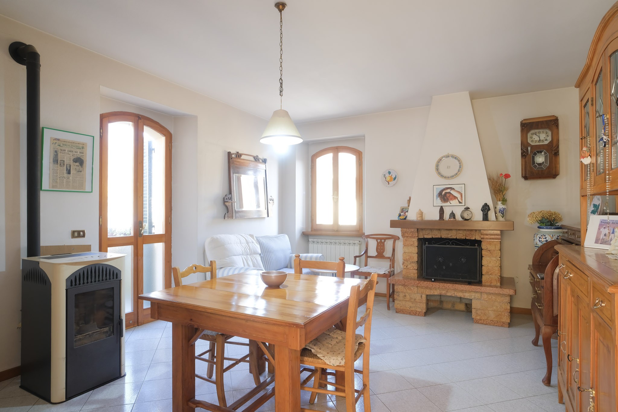 L’immobile è disposto su due piani, e nello specifico al primo piano, servito da scala con montascale già installato, si sviluppa l’abitazione principale in ottimo stato, composta internamente da soggiorno-pranzo con camino e balcone, cucina separata, 2 camere matrimoniali, disimpegno e comodo bagno finestrato.