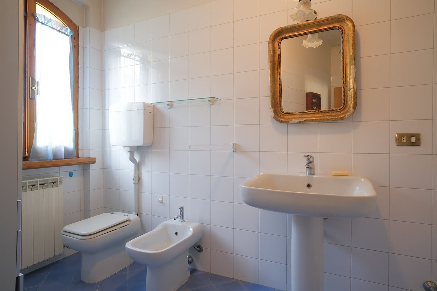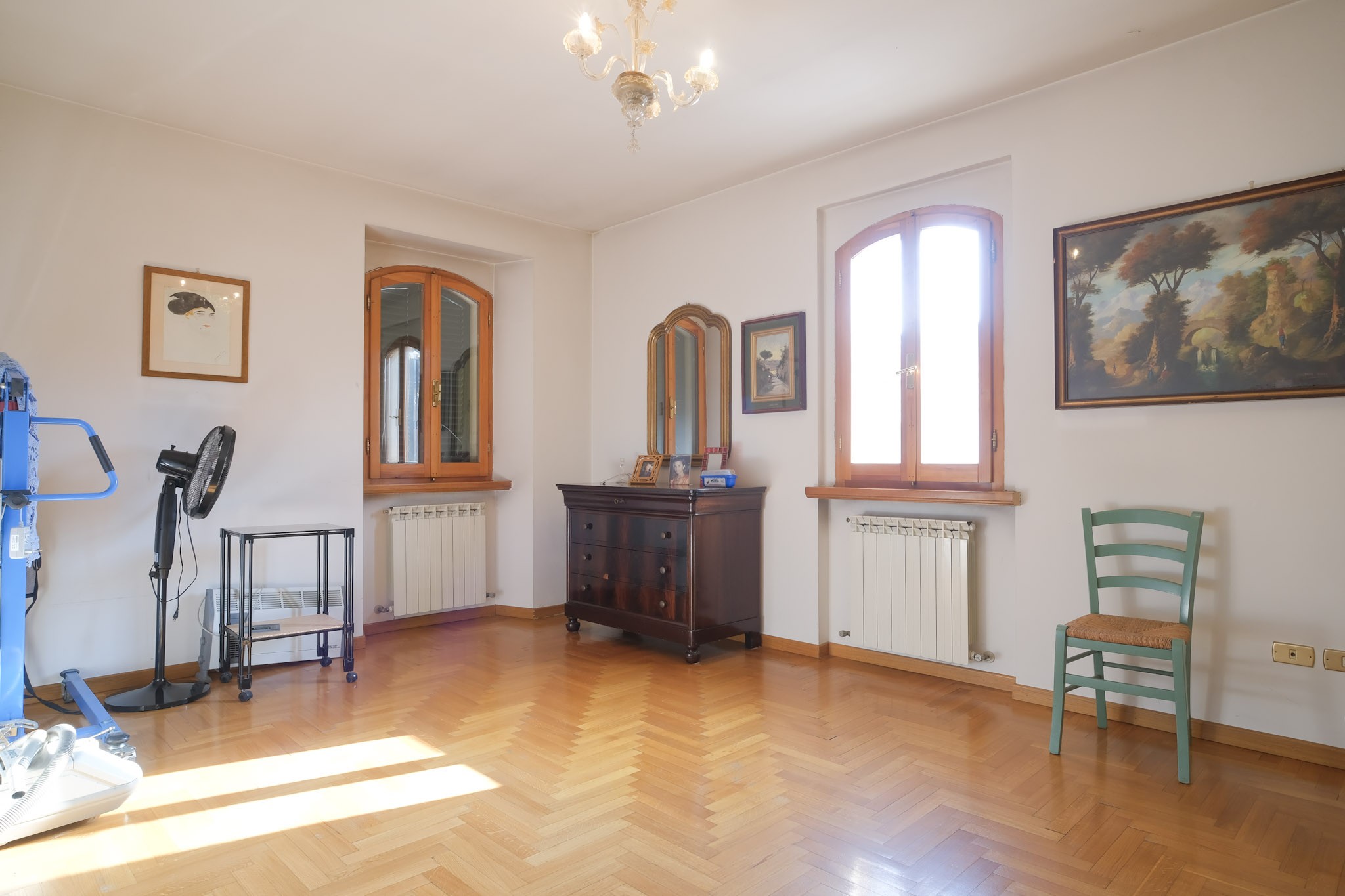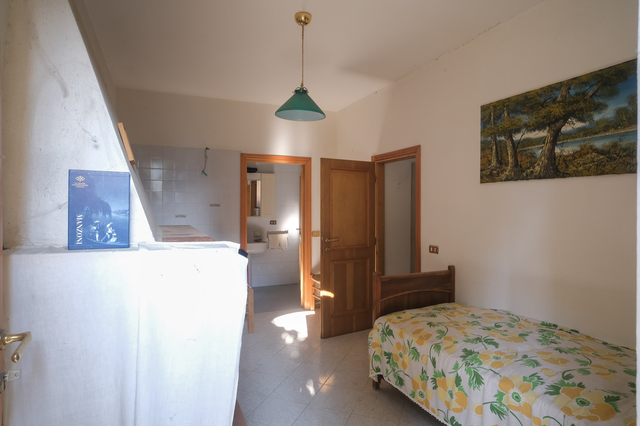 L’immobile è disposto su due piani, e nello specifico al primo piano, servito da scala con montascale già installato, si sviluppa l’abitazione principale in ottimo stato, composta internamente da soggiorno-pranzo con camino e balcone, cucina separata, 2 camere matrimoniali, disimpegno e comodo bagno finestrato.