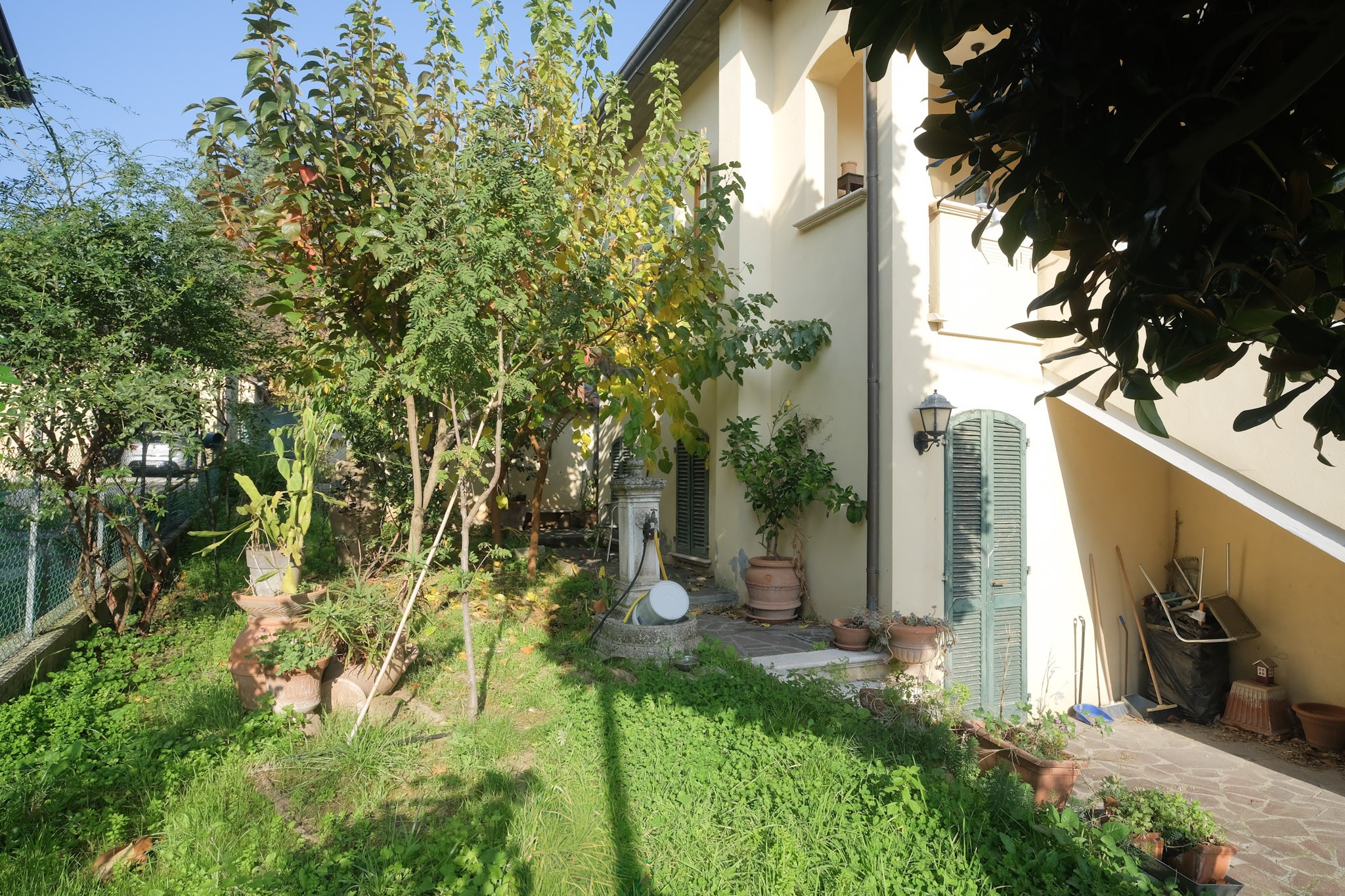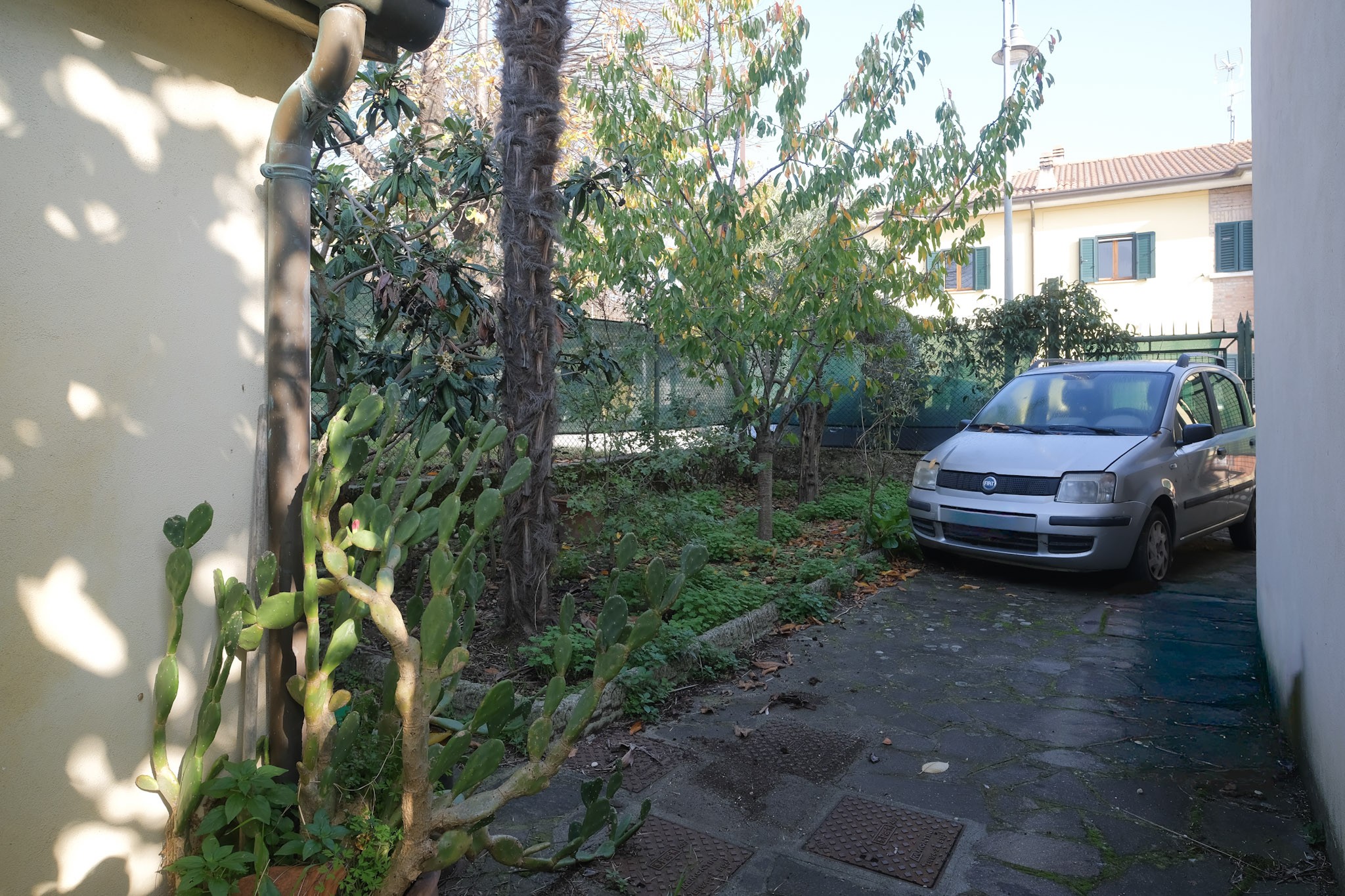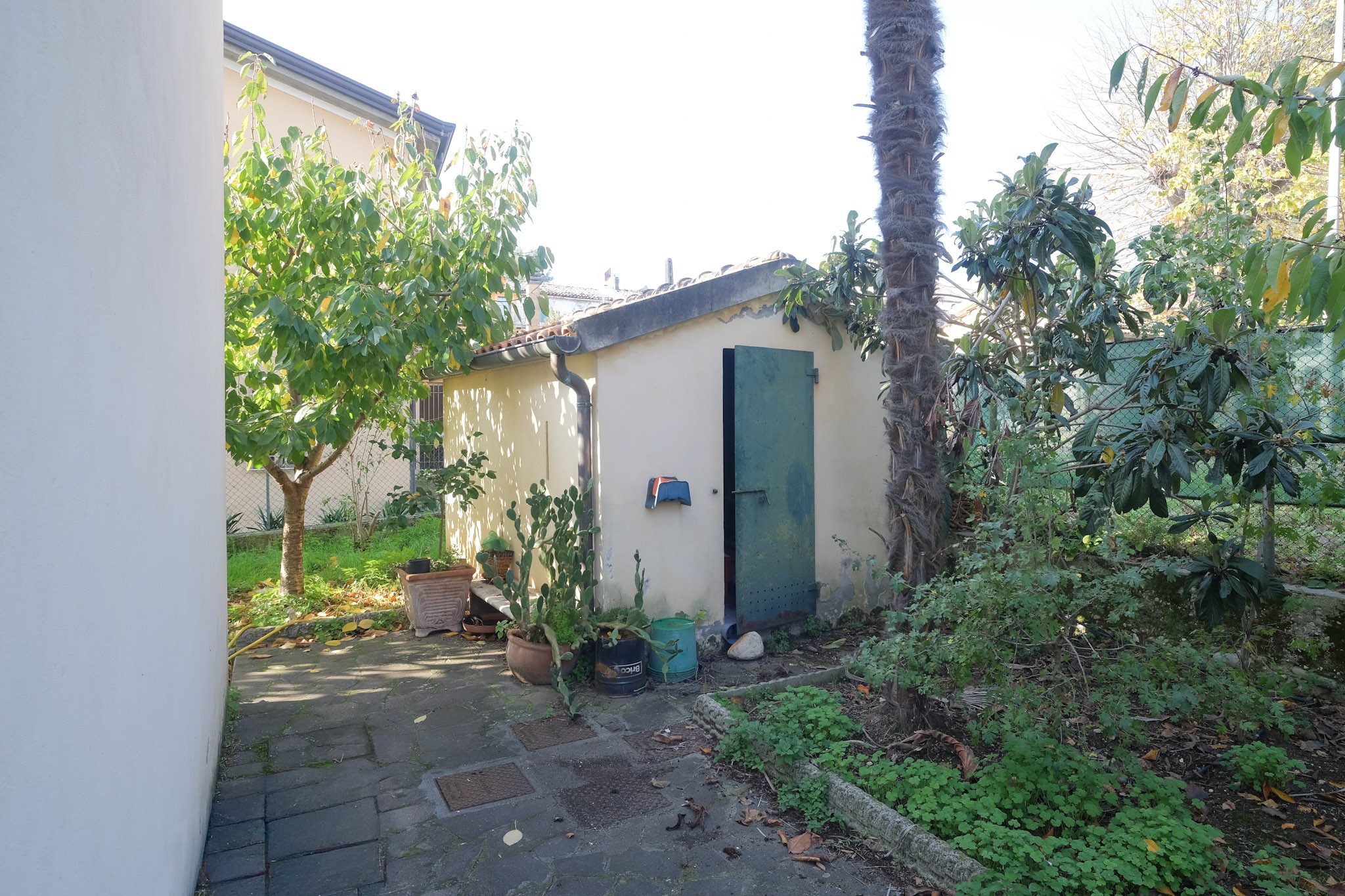 Un piacevole spazio esterno completa la proprietà, con ripostiglio fuori terra perfetto per il deposito di attrezzi, e la possibilità di posteggiare l’auto comodamente nella corte recintata.
