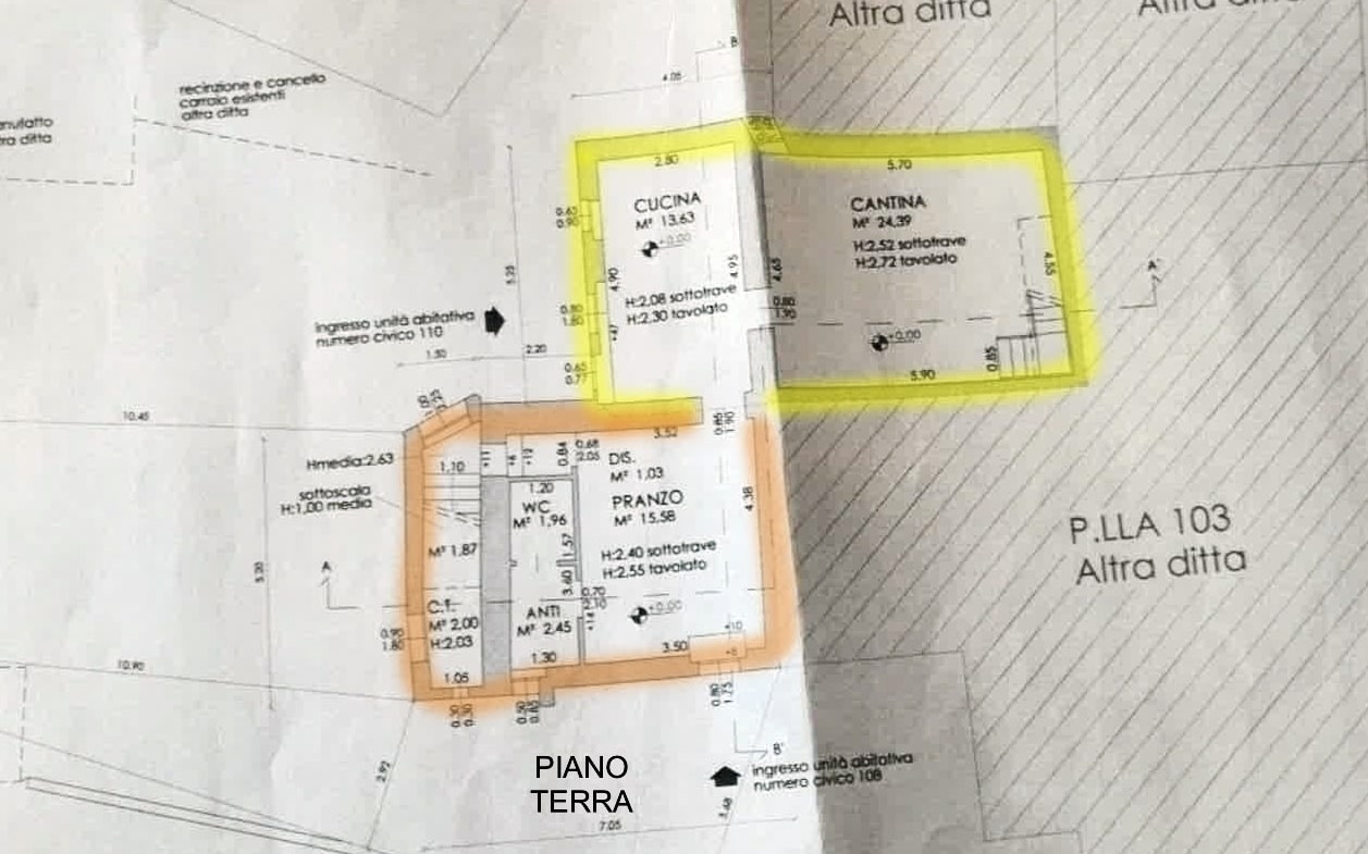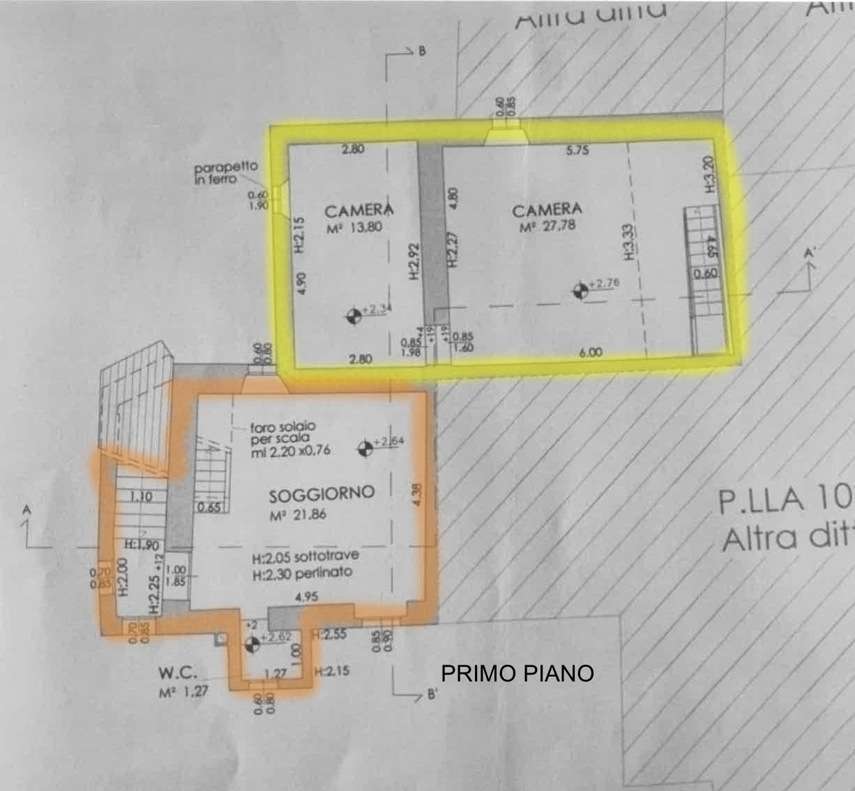 La seconda unità immobiliare è invece disposta su tre livelli, con la zona pranzo ed il bagno finestrato al piano terra, al piano superiore si sviluppa il soggiorno attualmente utilizzato come camera, ed al secondo piano troviamo un'ulteriore camera da letto.