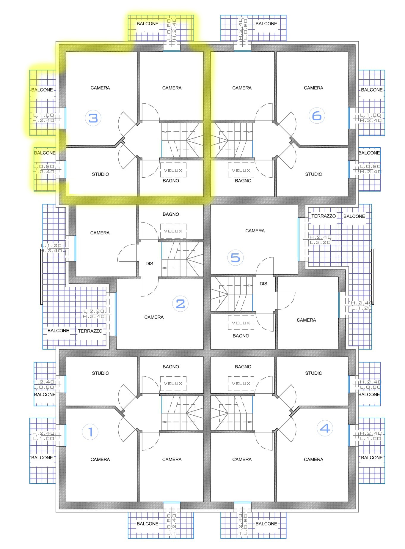 Al primo piano troviamo tre comode camere da letto, tutte servite da balconi, oltre il bagno finestrato.