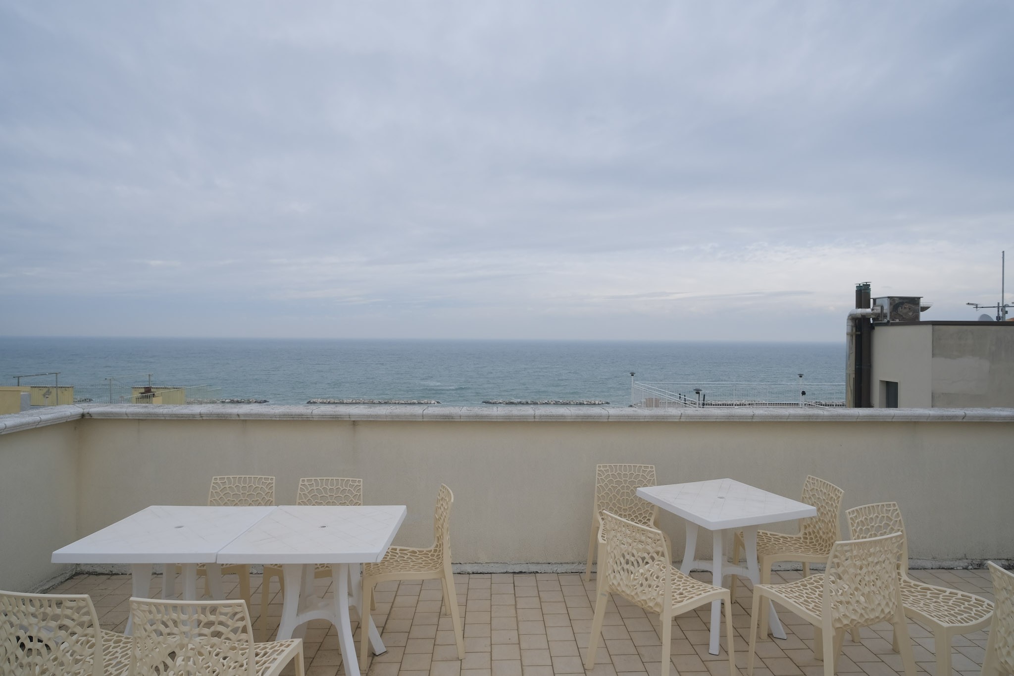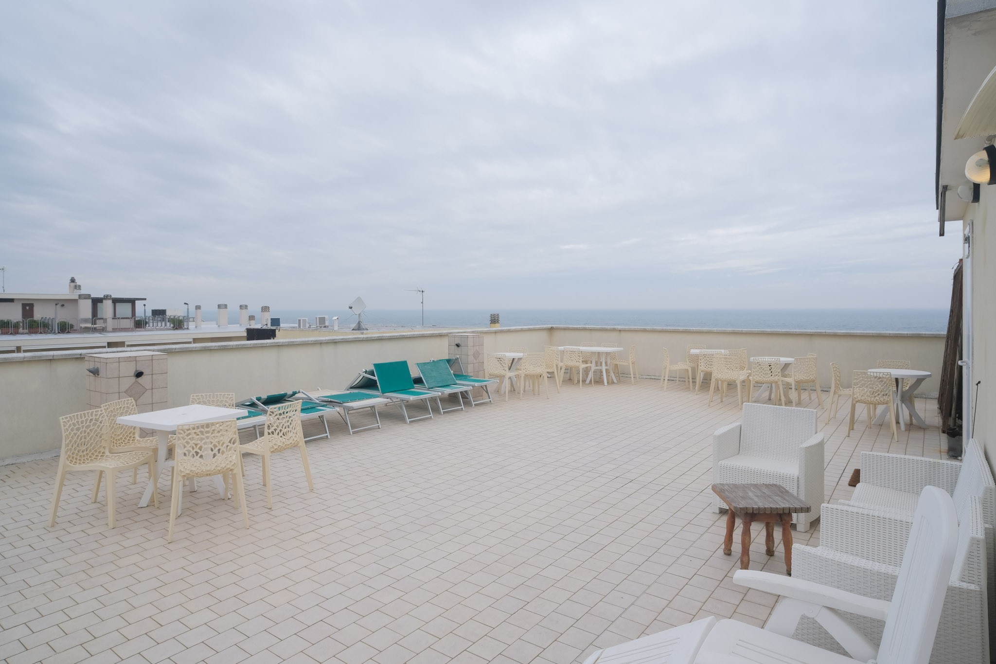Un altro punto di forza di questa proprietà è il terrazzo abitabile all'ultimo piano di circa 160 Mq con meravigliosa vista mare, attualmente adibita a zona solarium attrezzata con lettini dove è possibile godersi l'aria di mare in ogni momento della giornata.
