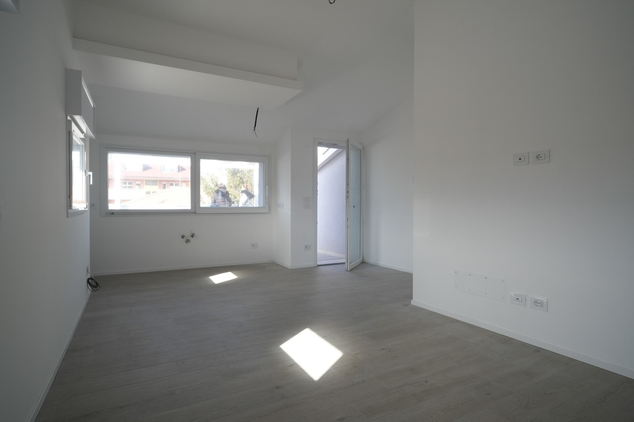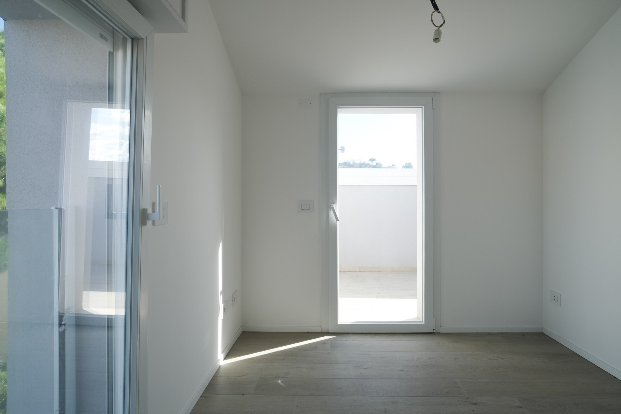 L'appartamento, caratterizzato da profili eleganti, è dotato di accogliente soggiorno-pranzo con predisposizione per cucina a vista, e splendido terrazzo abitabile di 33 Mq ideale per pranzi all'aperto, momenti di relax o per creare una zona leaving esterna.