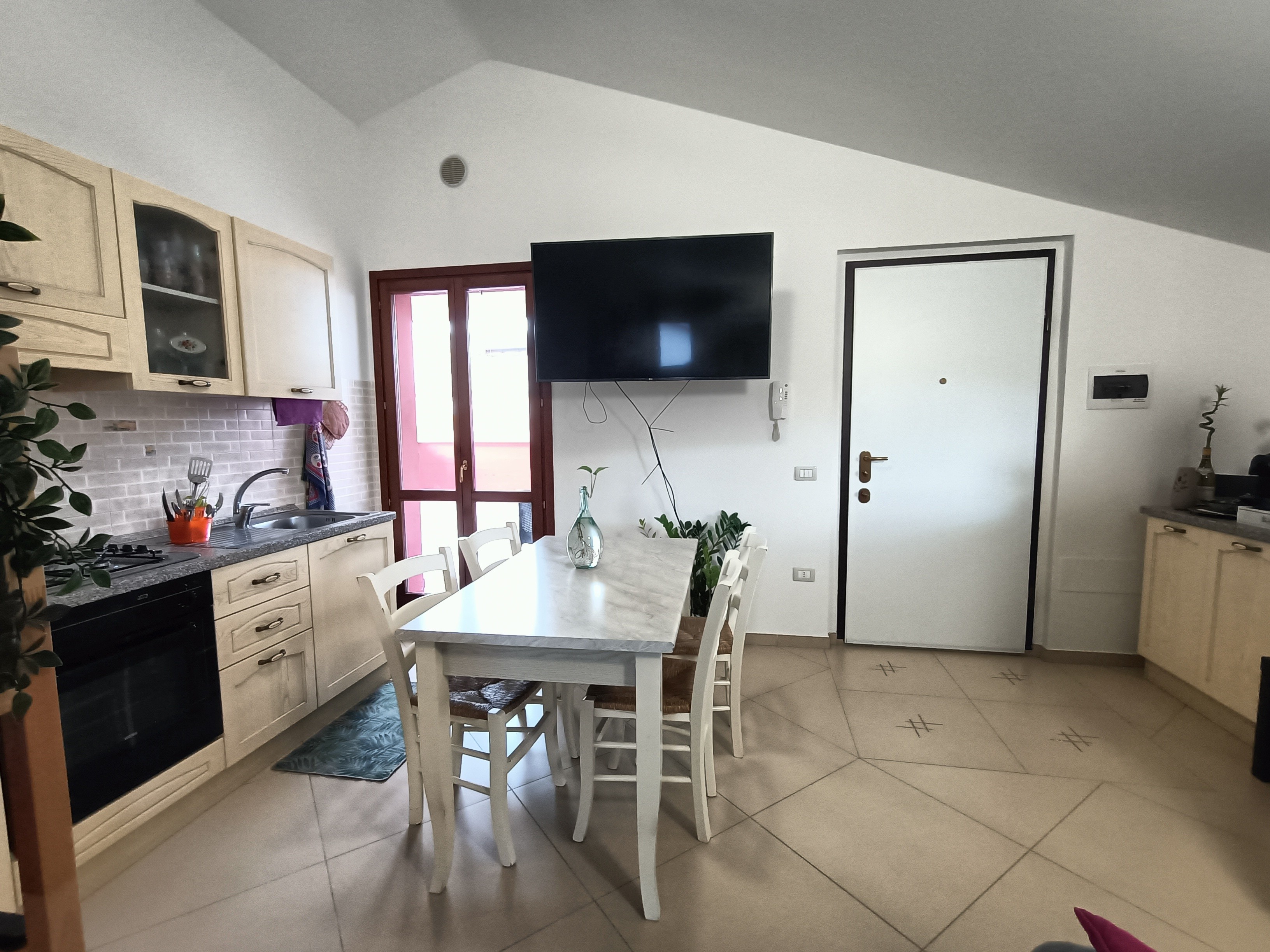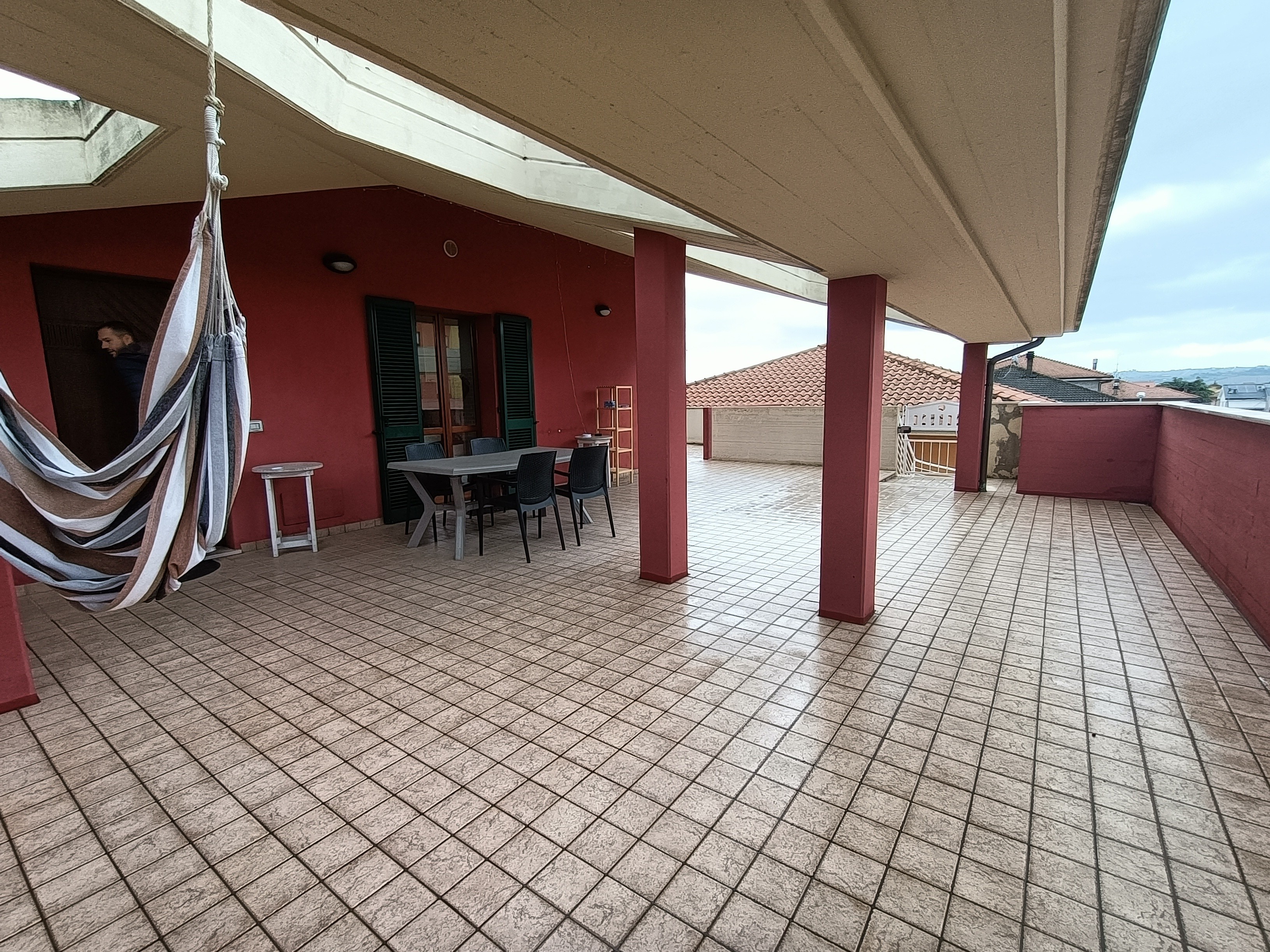 L'appartamento, di 56Mq, è composto da ingresso, soggiorno, angolo cottura, spaziosa camera matrimoniale, cameretta, bagno finestrato e meraviglioso terrazzo abitabile di proprietà di circa 80Mq perfetto per godersi momenti all'aria aperta.