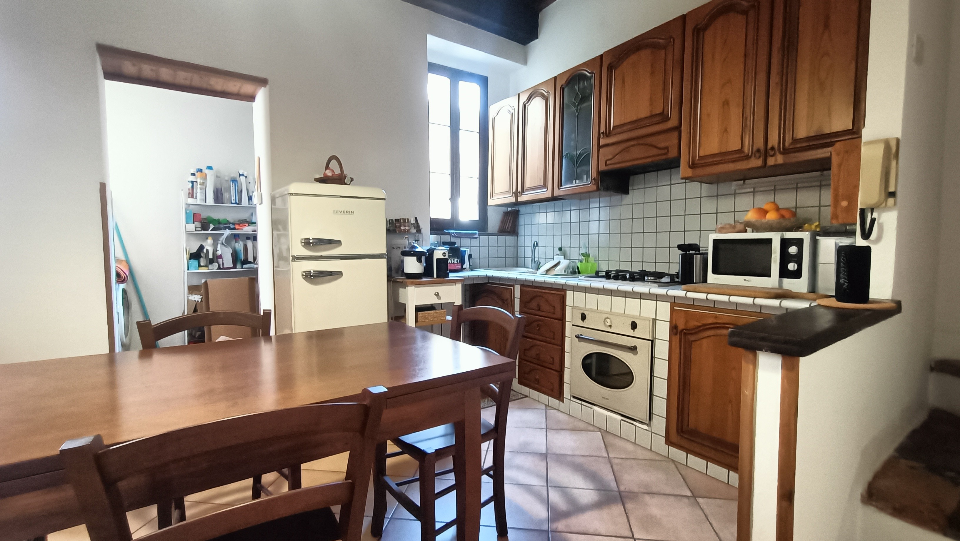 - Al primo piano, oltre l’ingresso troviamo il soggiorno con angolo cottura, e ripostiglio adibito a lavanderia.