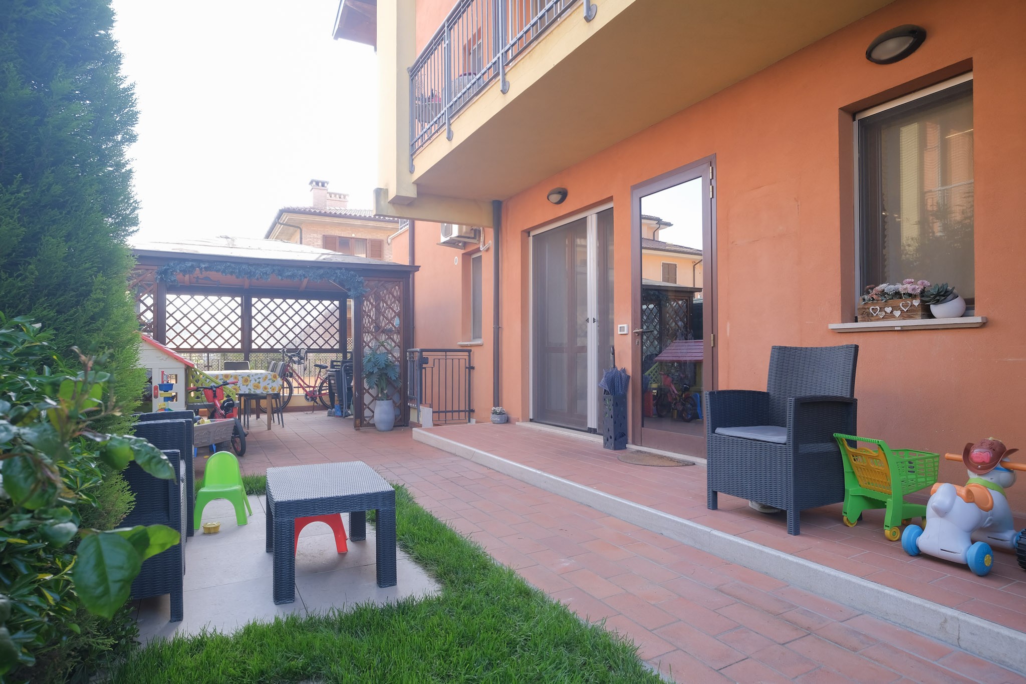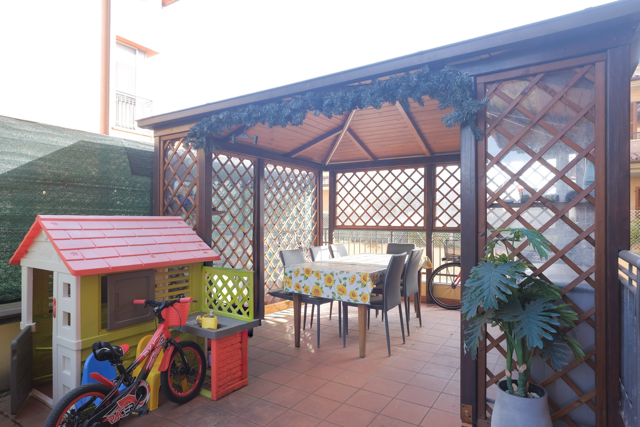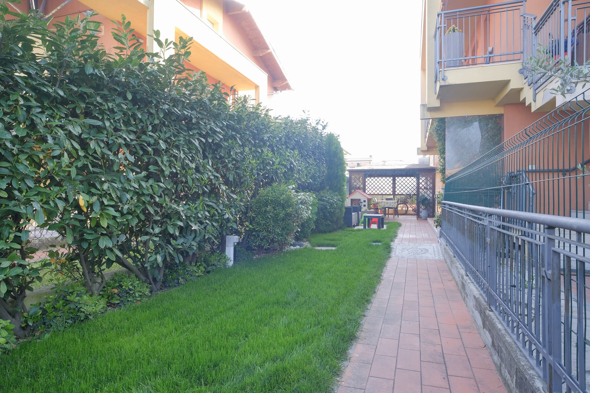 A servizio dell’abitazione, uno scoperto esclusivo di circa 112 mq, di cui 40 mq adibiti a giardino con illuminazione e irrigazione automatica, e la restante parte pavimentata, ideale per pranzi e cene all’aperto. Presente inoltre gazebo in legno regolarmente installato e illuminato.