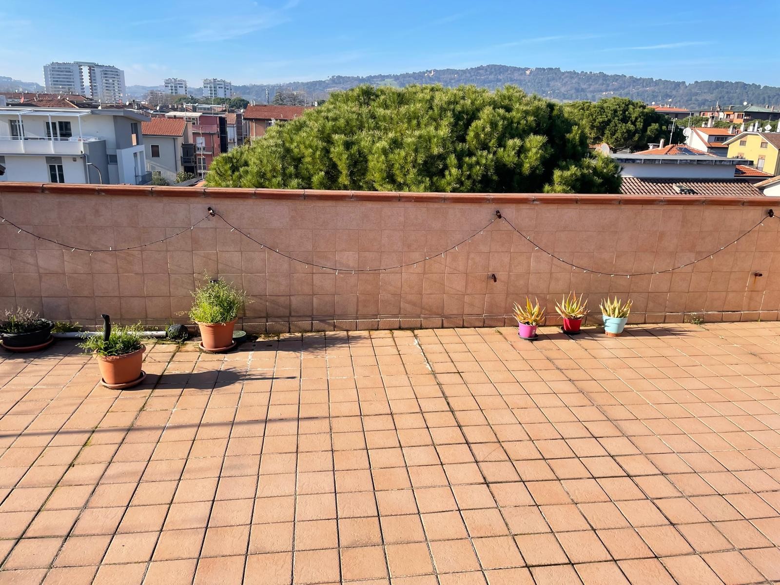 Al piano superiore, non collegato internamente all’appartamento, abbiamo la soffitta di proprietà ed uno splendido TERRAZZO ABITABILE di 43 Mq con vista panoramica sulle colline e città, perfetto per essere utilizzato come zona solarium relax, o per cene estive all’aperto.