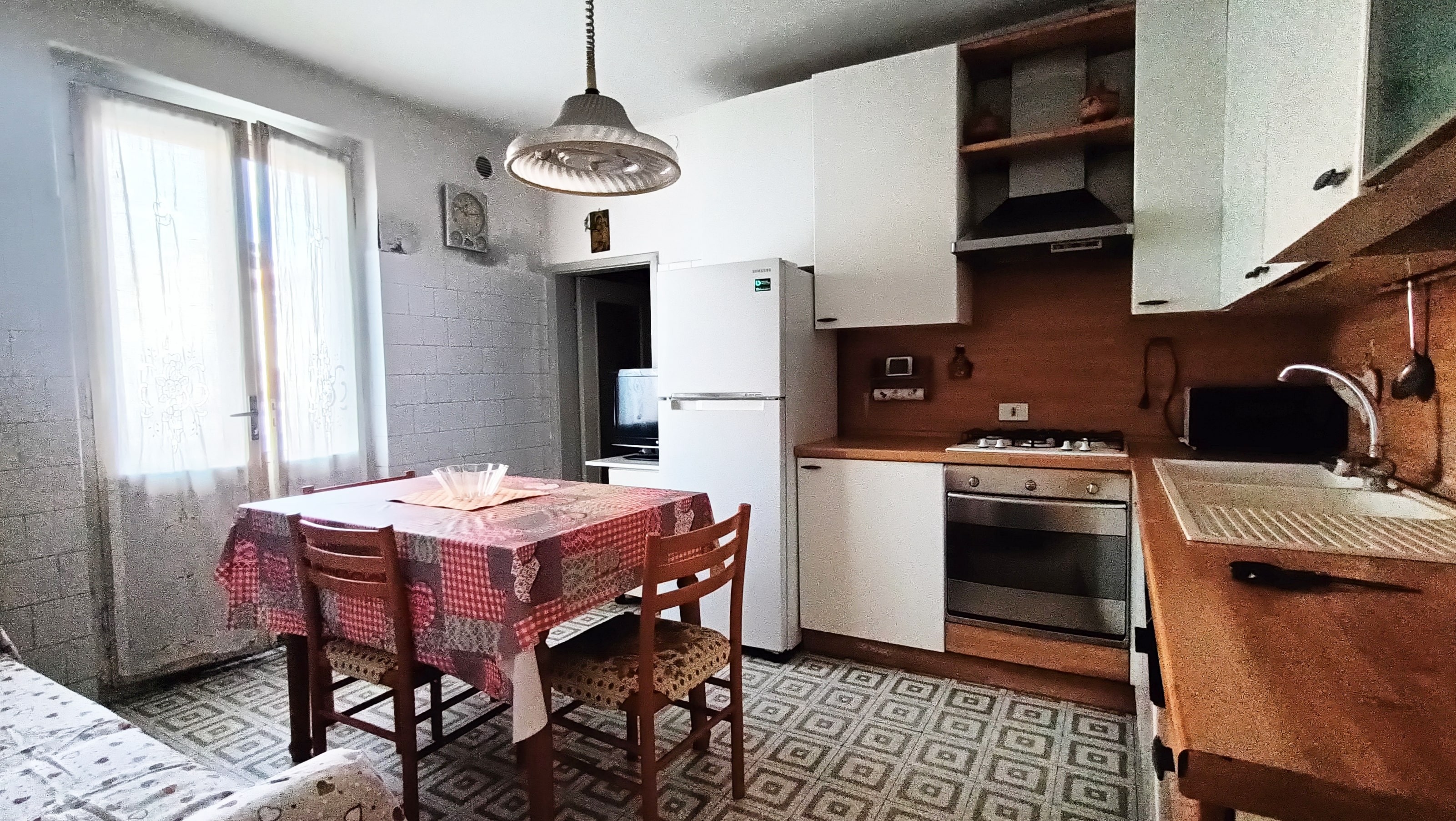 Nello specifico l'abitazione al piano terra è dotata di soggiorno con cucina e bagno. Al primo piano sono disposte le 2 camere da letto, una piccola veranda, il secondo bagno, un ripostiglio ed altre due stanze comunicanti dove è possibile realizzare altre camere.